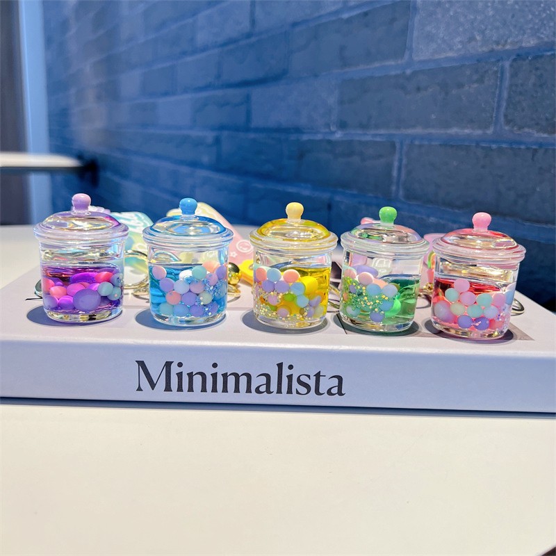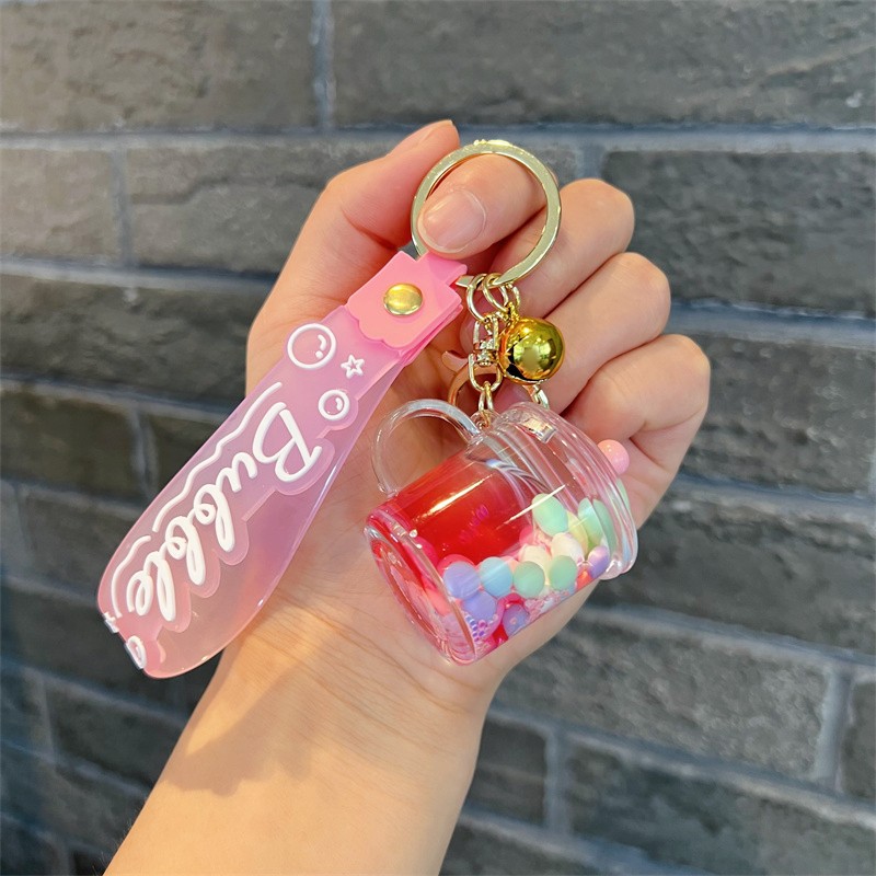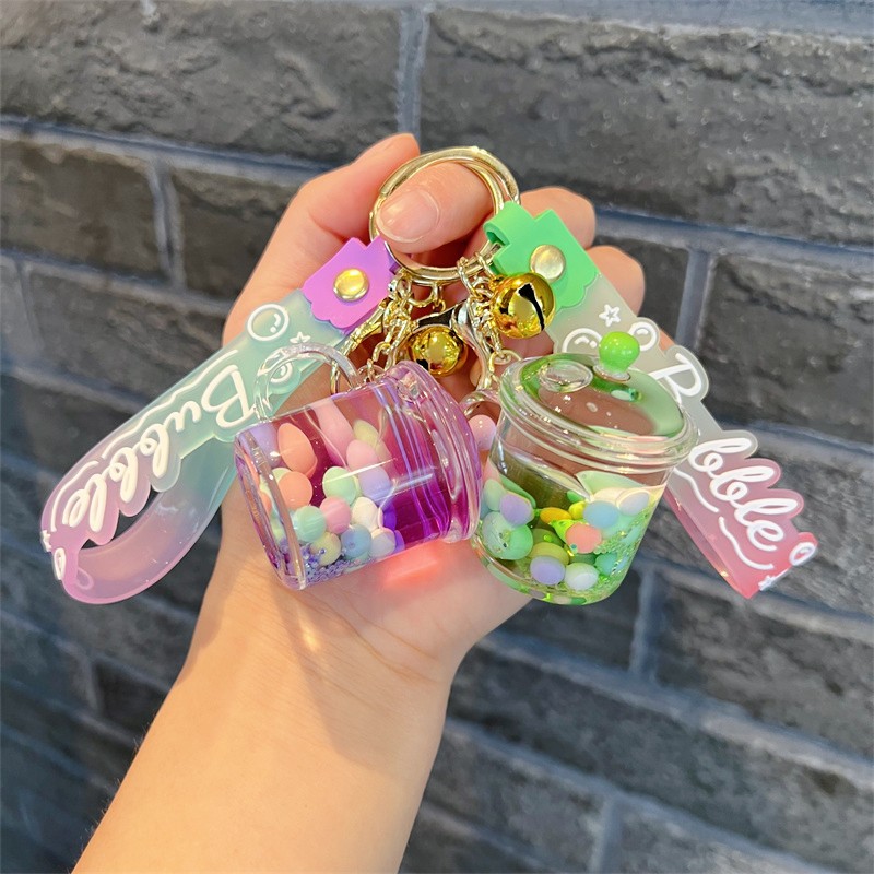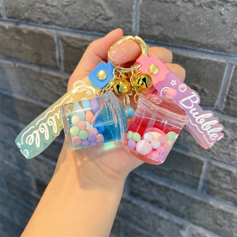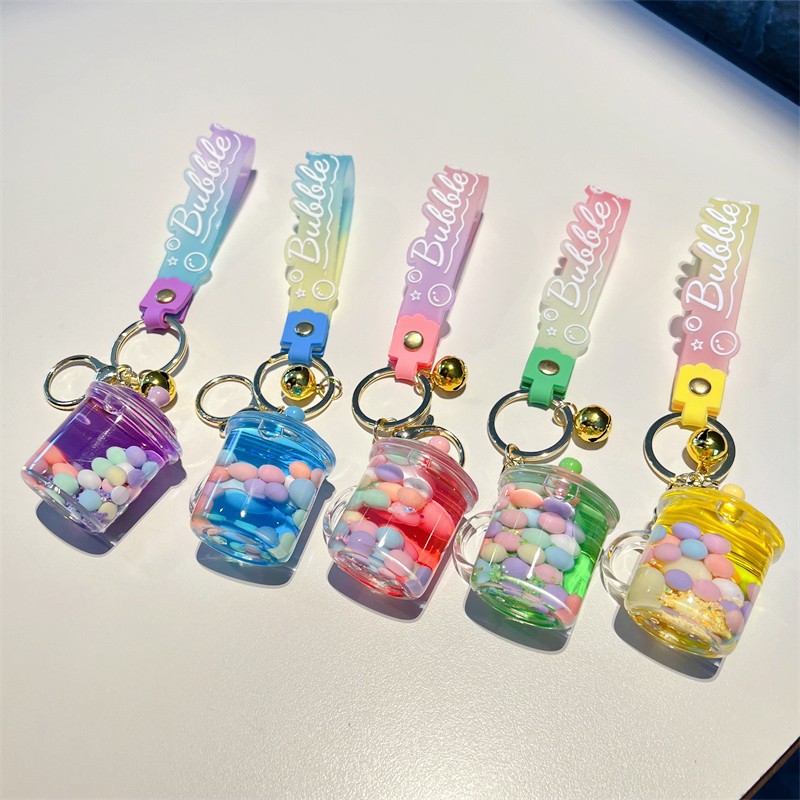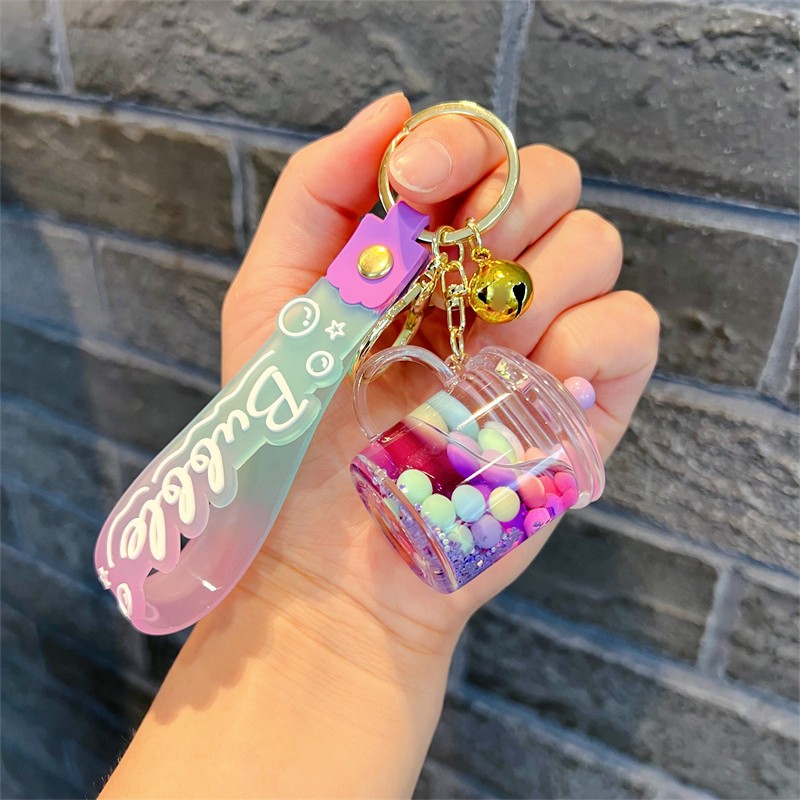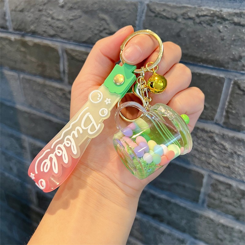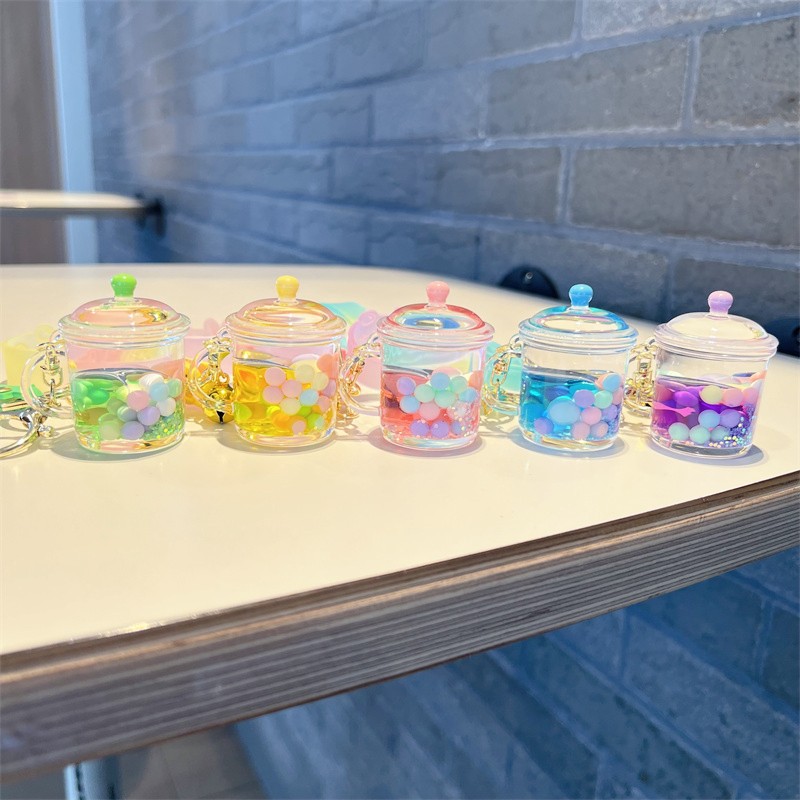 入油糖豆马克杯钥匙扣漂浮液体盖杯流沙瓶钥匙链男女糖豆杯子挂件