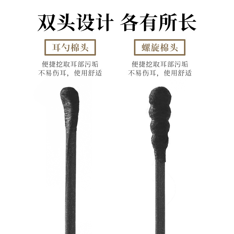 日本挖耳勺棉签粘掏耳朵黑色棉球棒大人专用一次性螺旋双头棉花棒