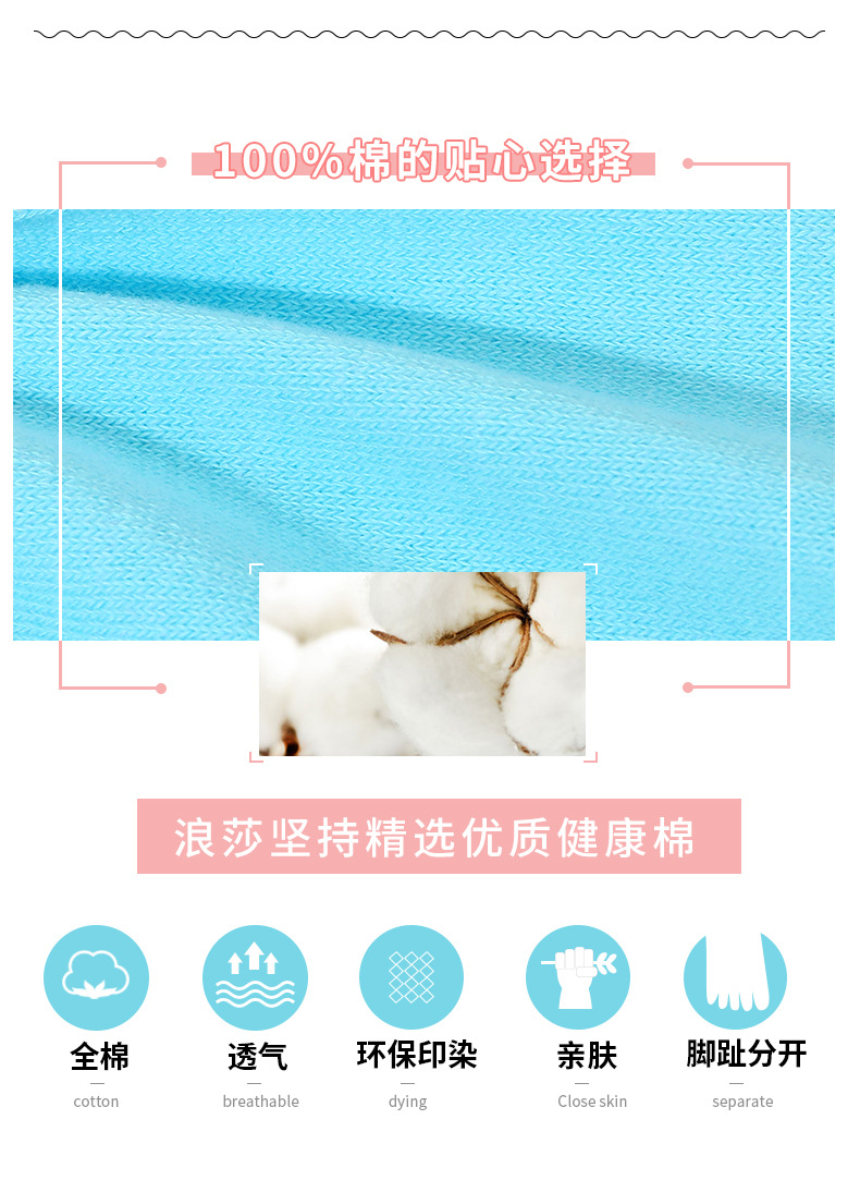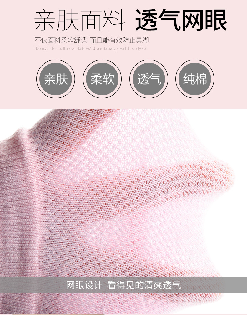 浪莎女士五指袜夏季薄款全棉分趾袜网眼透气纯棉防臭袜子吸汗棉袜