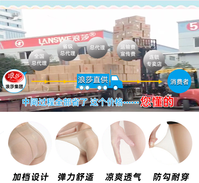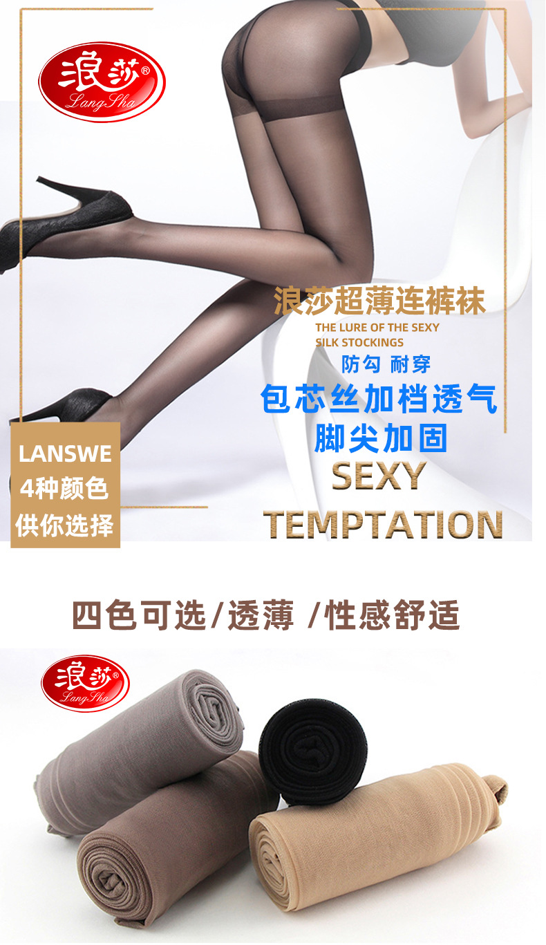 女长筒连裤袜防勾丝菠萝袜批发黑肉色夏季超薄性感浪莎连裤袜4双