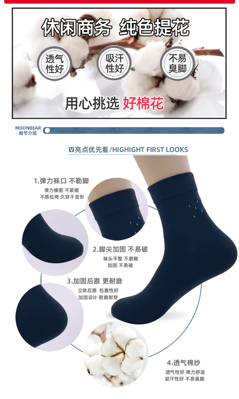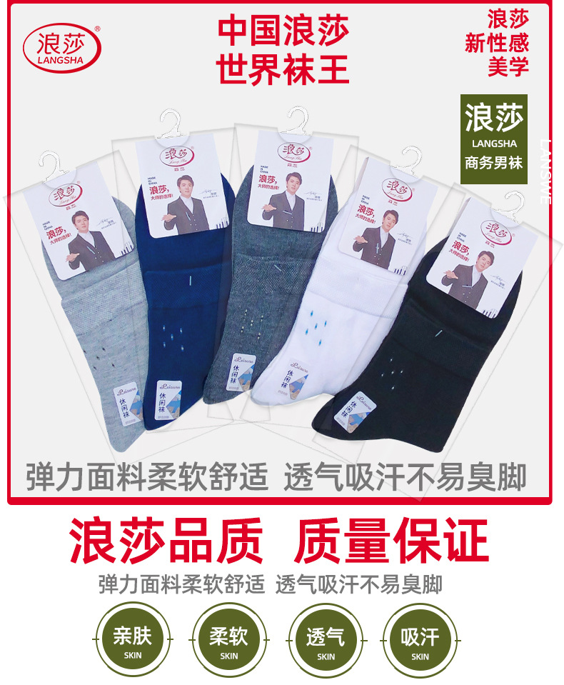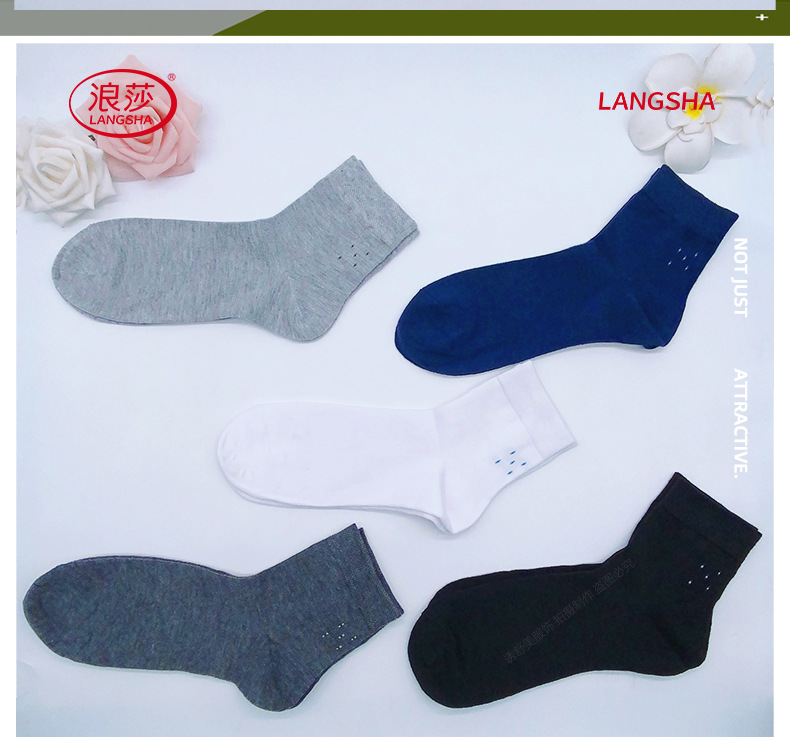 浪莎袜子男士中筒透气袜春秋中厚款吸汗长袜休闲短袜酒店商务男袜