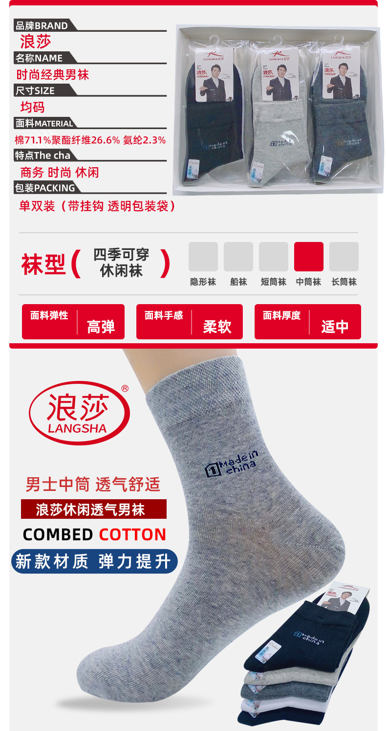 浪莎袜子男中筒棉袜春秋加厚吸汗精梳棉长袜夏季短袜冬季运动男袜