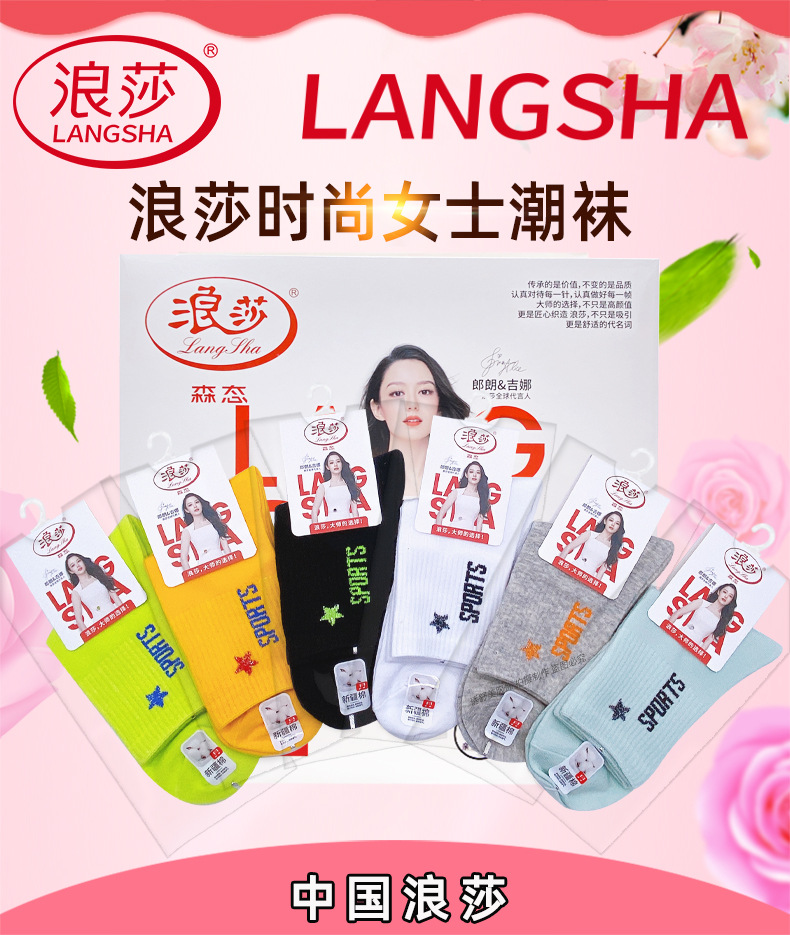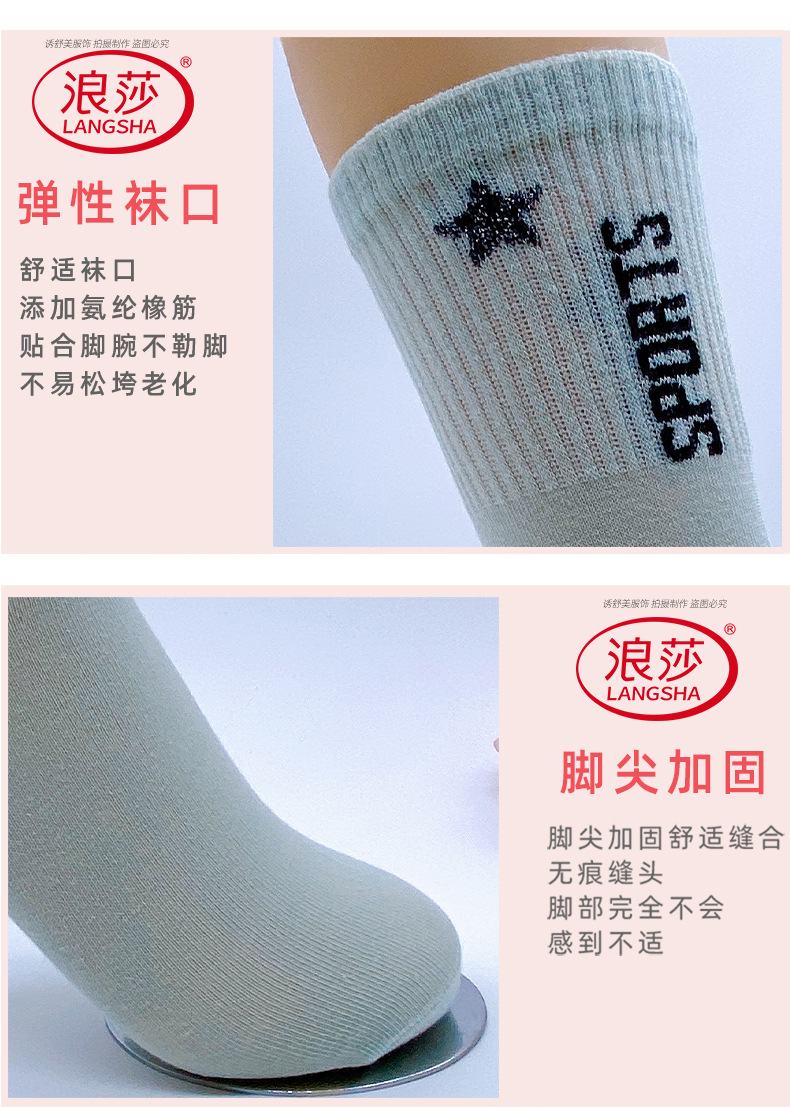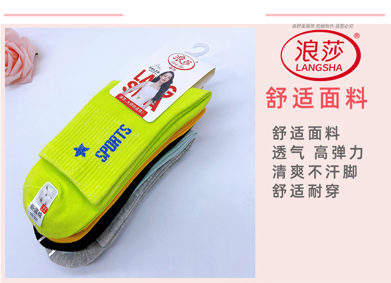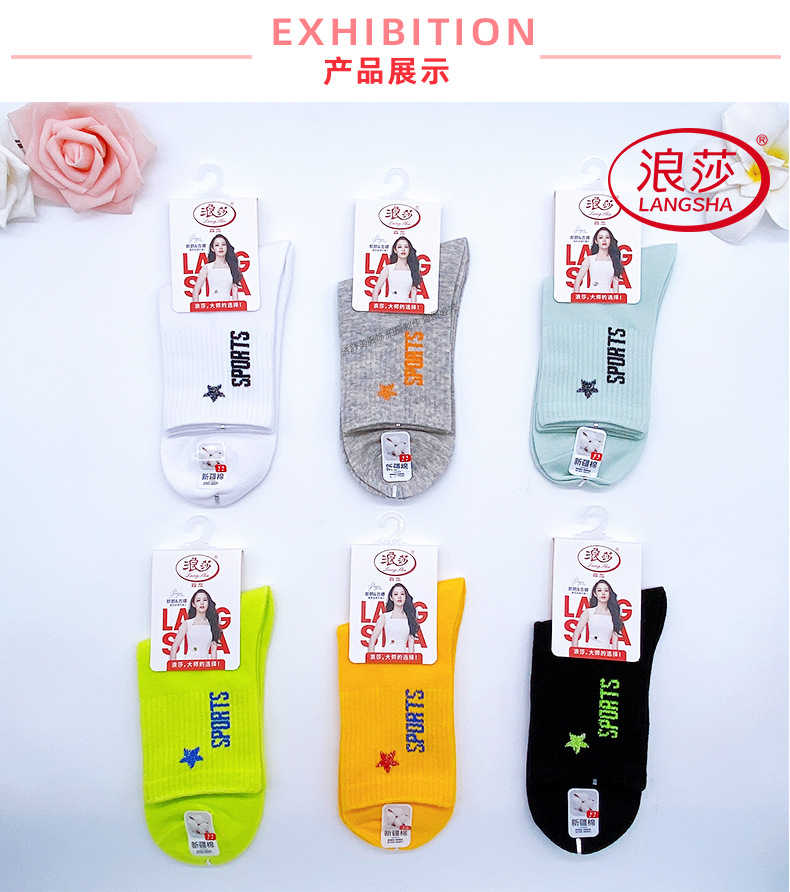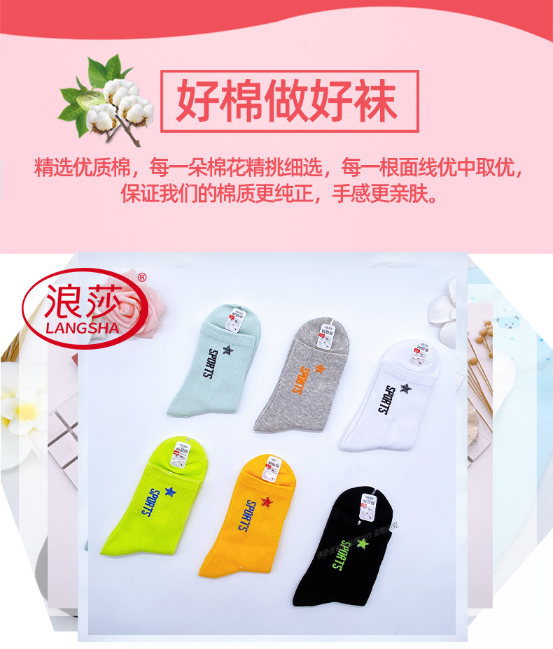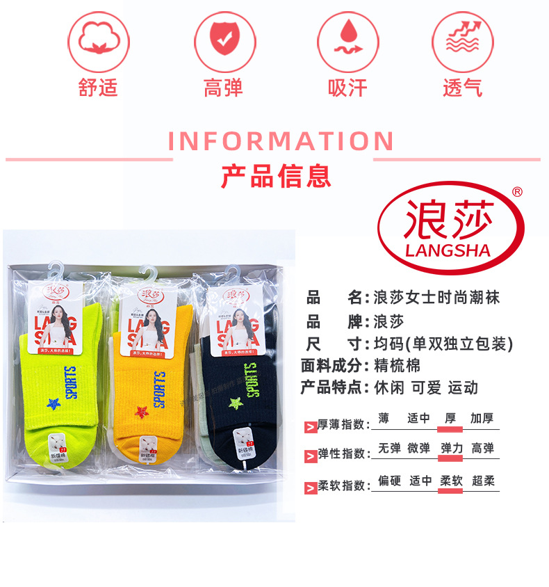 浪莎袜子女士精梳棉中筒袜春秋款彩色长筒袜浪沙时尚袜独立包装