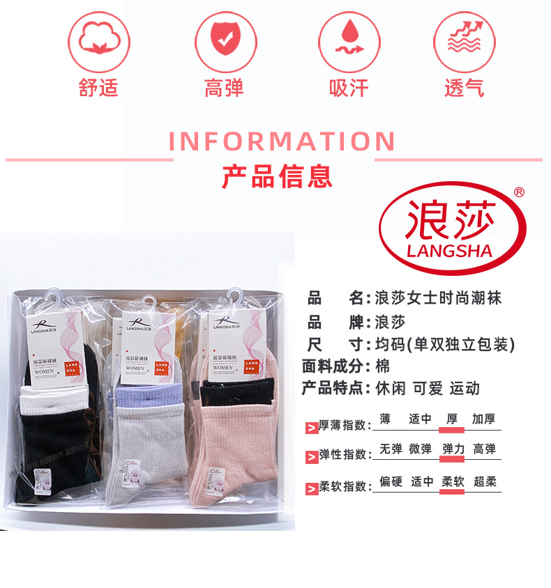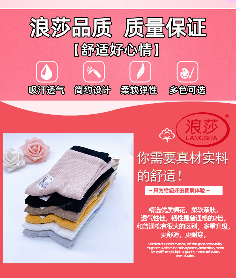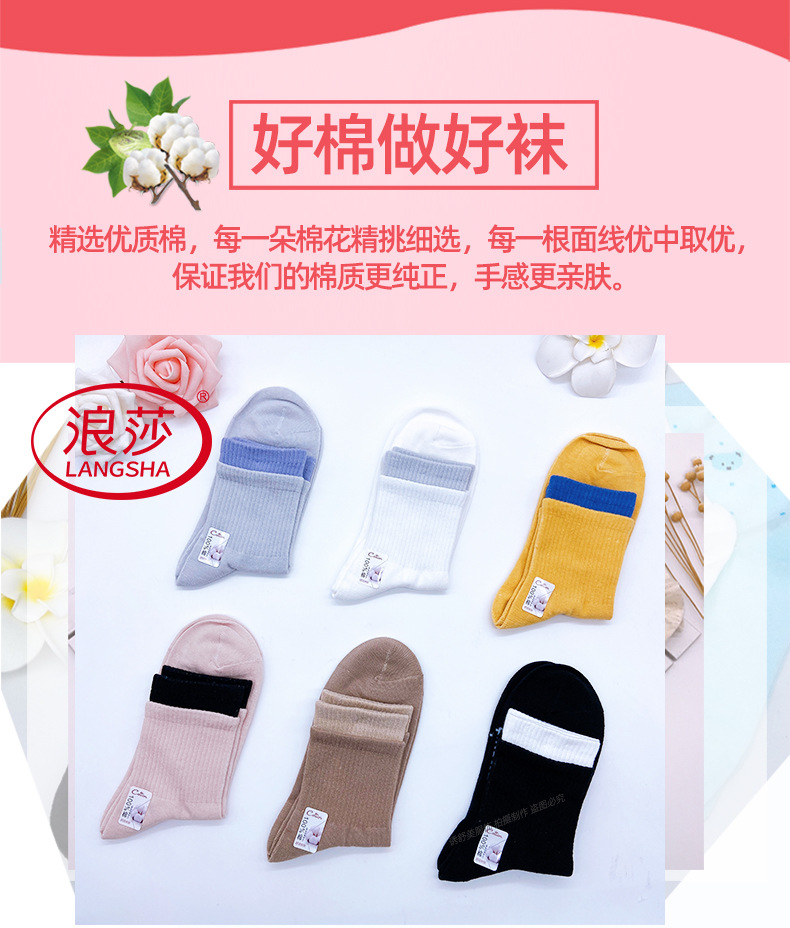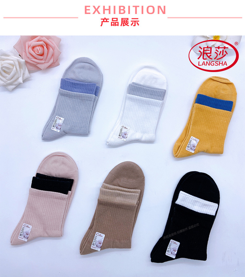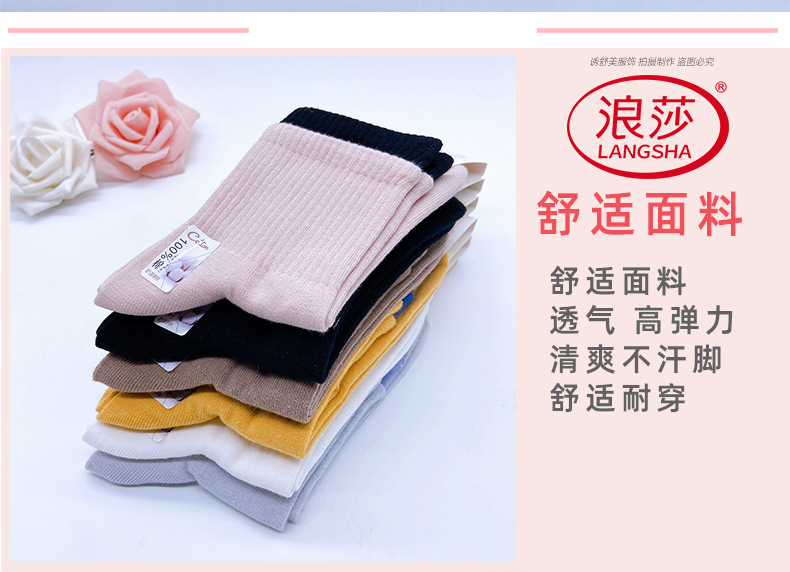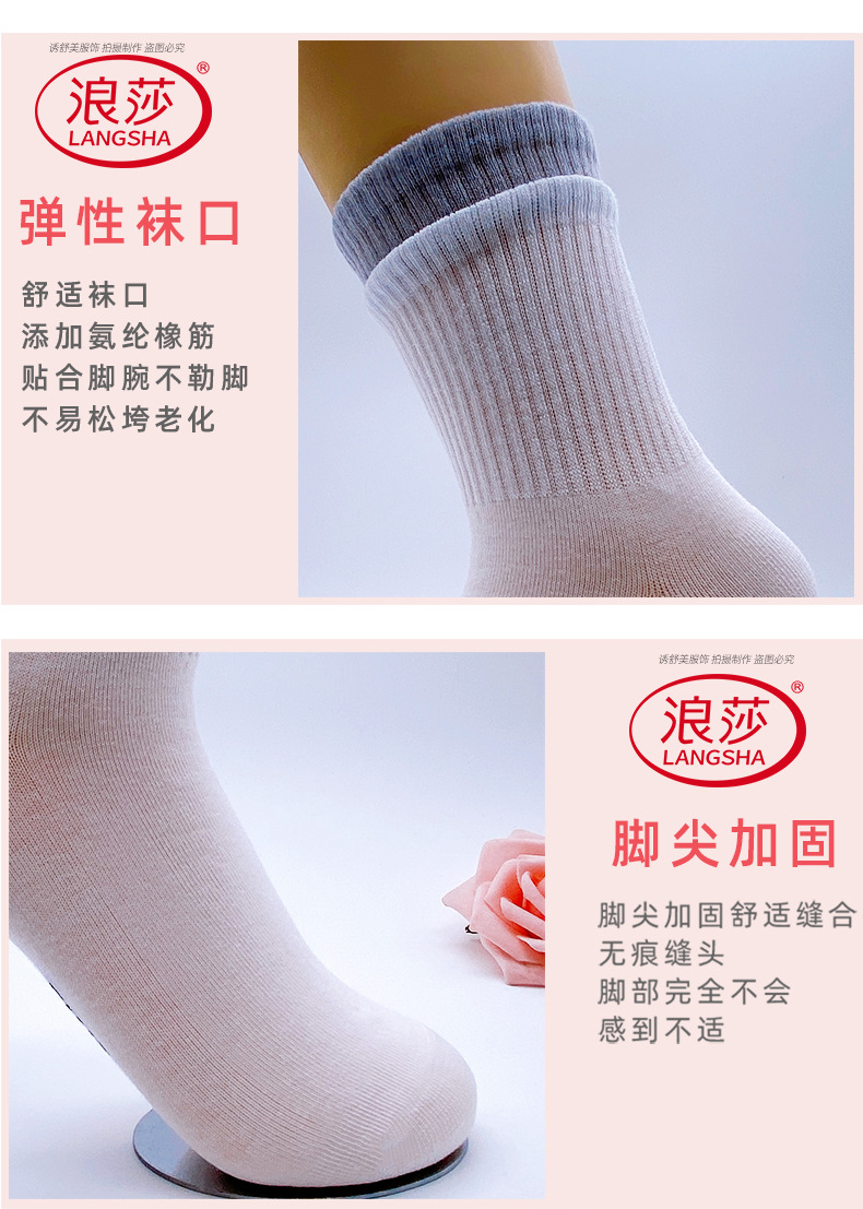 浪莎袜子女全棉秋夏季防臭中筒袜春秋款秋冬四季女士棉袜纯棉女袜