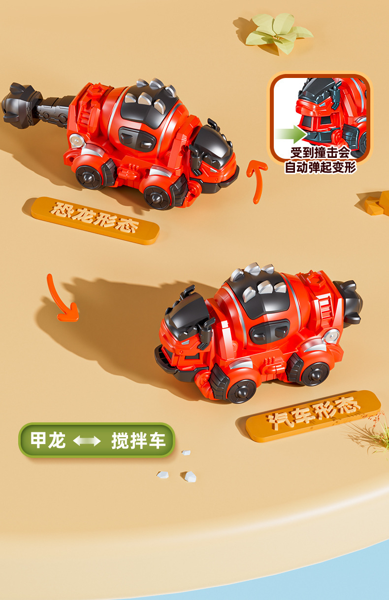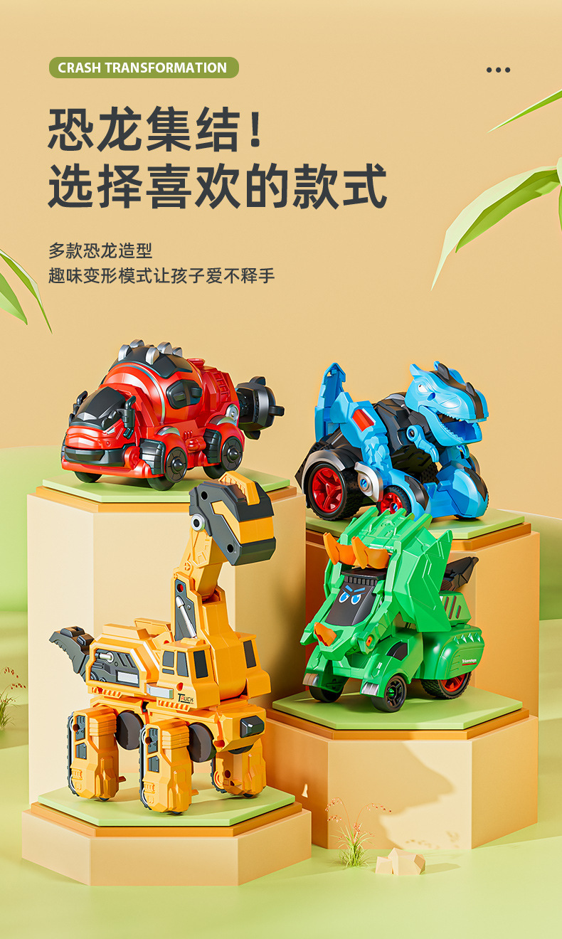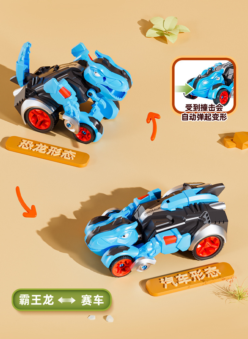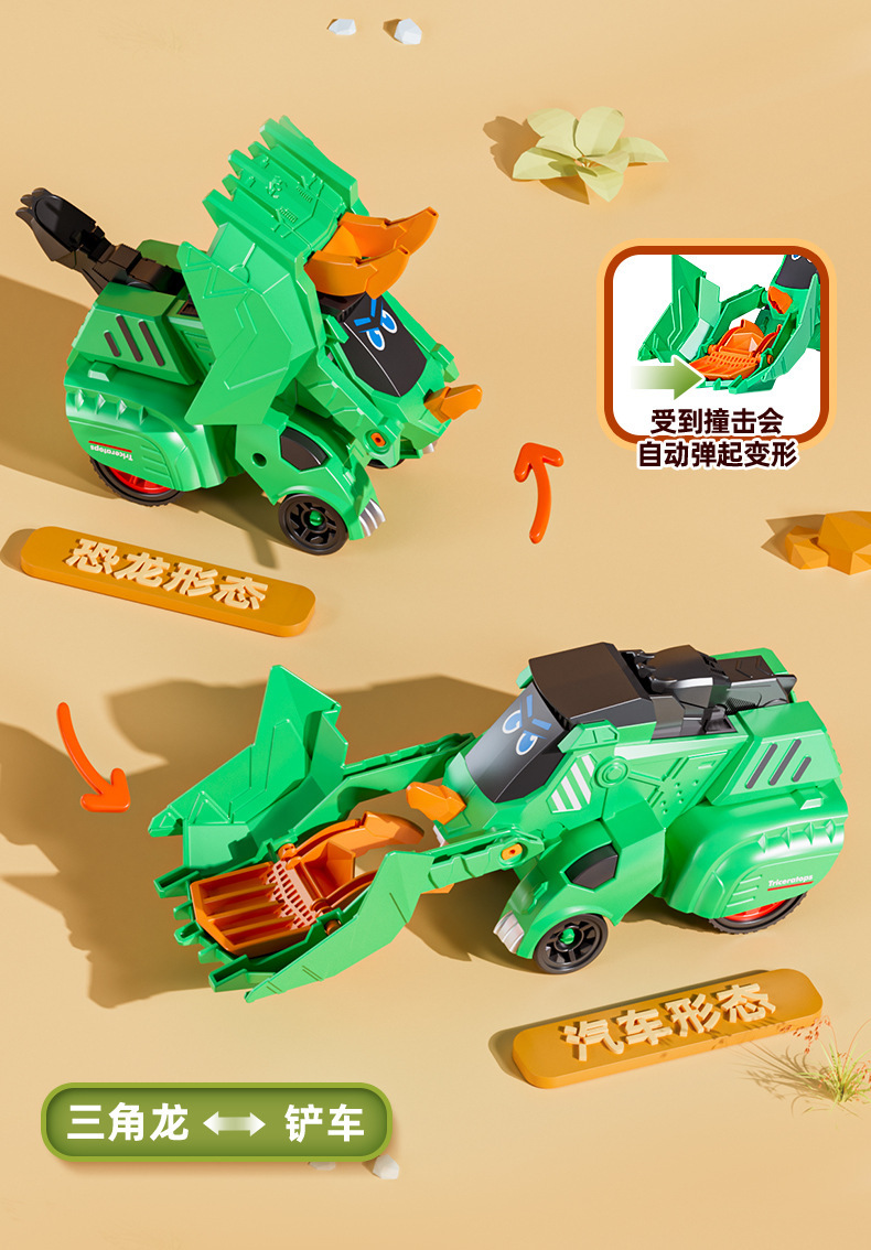抖音儿童碰撞变形车恐龙惯性玩具霸王龙三角龙战车模型男孩礼物