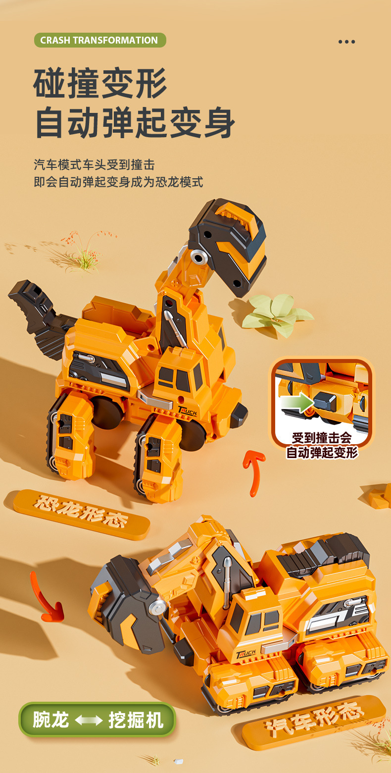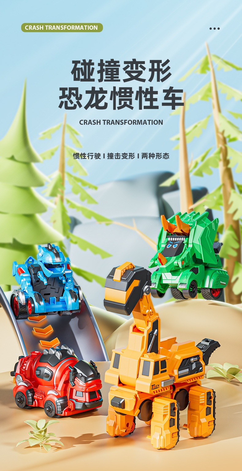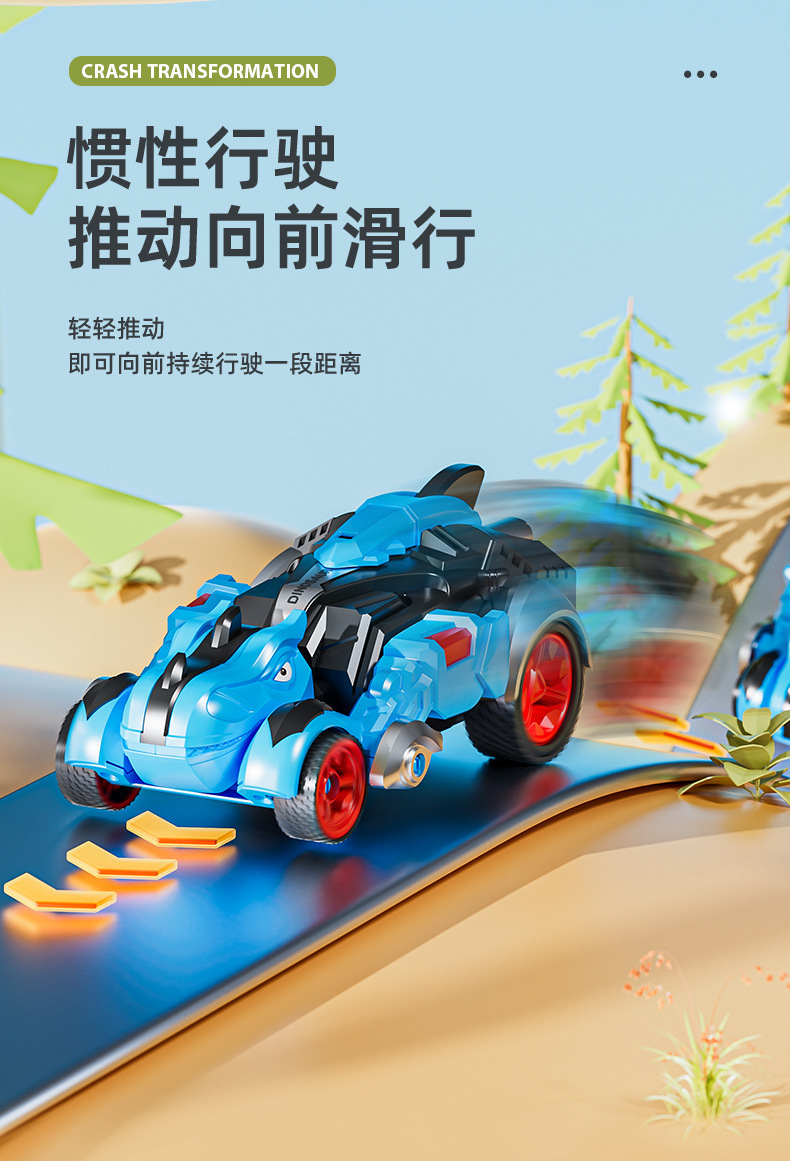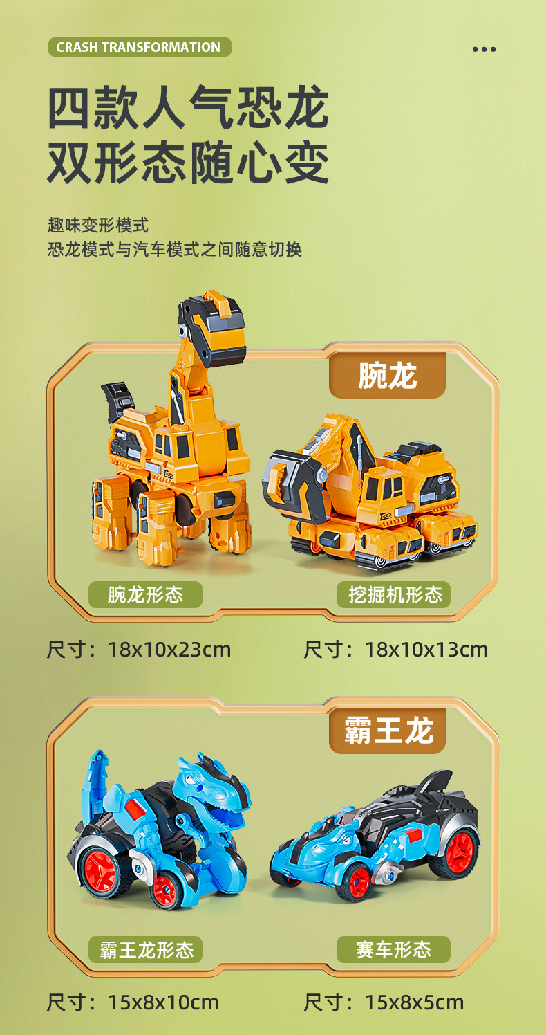 抖音儿童碰撞变形车恐龙惯性玩具霸王龙三角龙战车模型男孩礼物