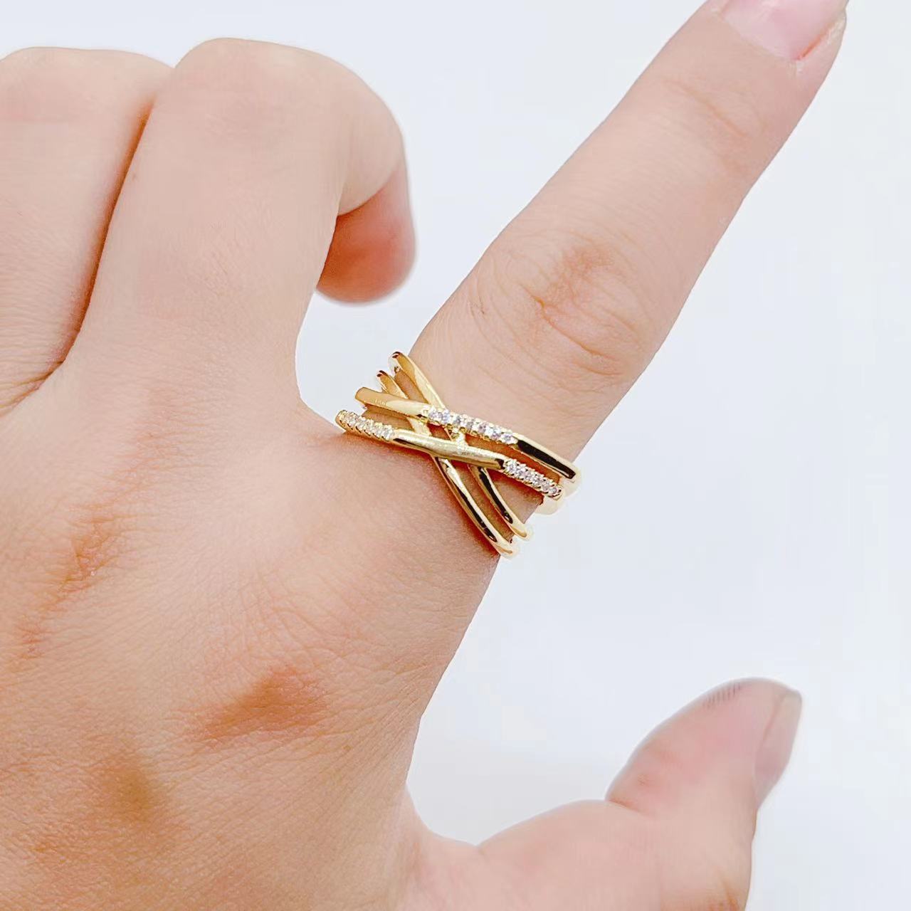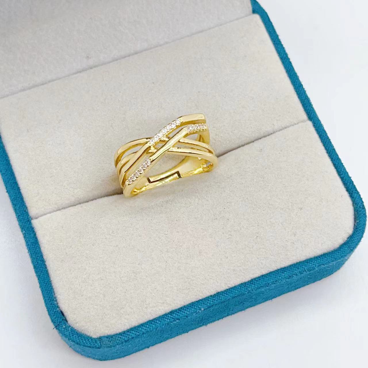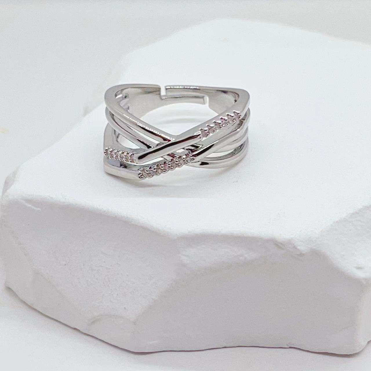 欧美跨境新品开口戒个性简约几何多边形交叉戒指微镶铜锆石保色