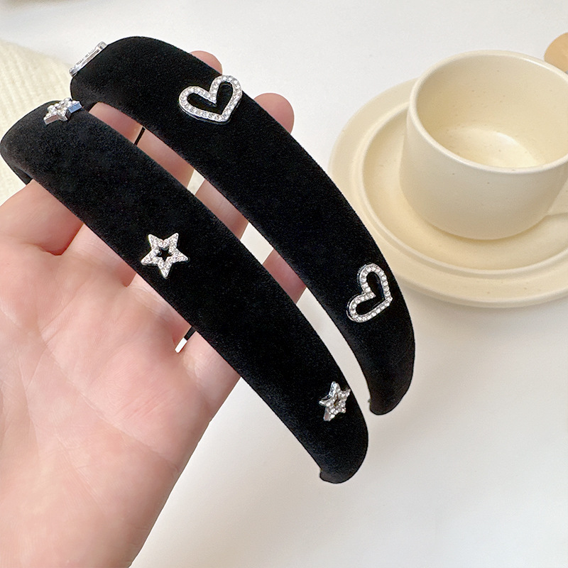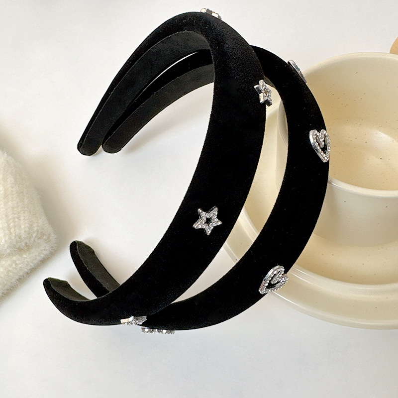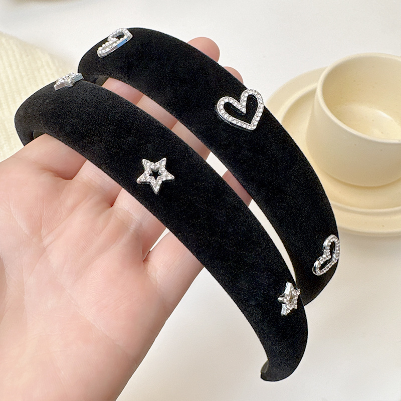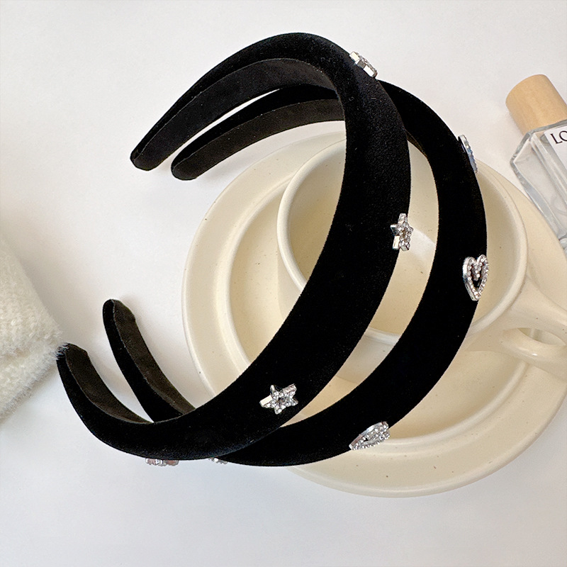 黑色宽边丝绒爱心发箍女2023年新款外出高颅顶发饰高级感秋冬头箍