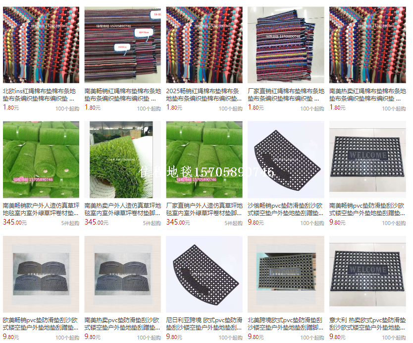 | 跨境出口仿真人造塑料绿色假草坪绣花地垫入户门除尘脚垫家用吸水防滑地毯 | 义乌市吉吉猴家纺有限公司 |
