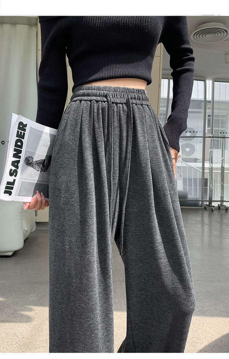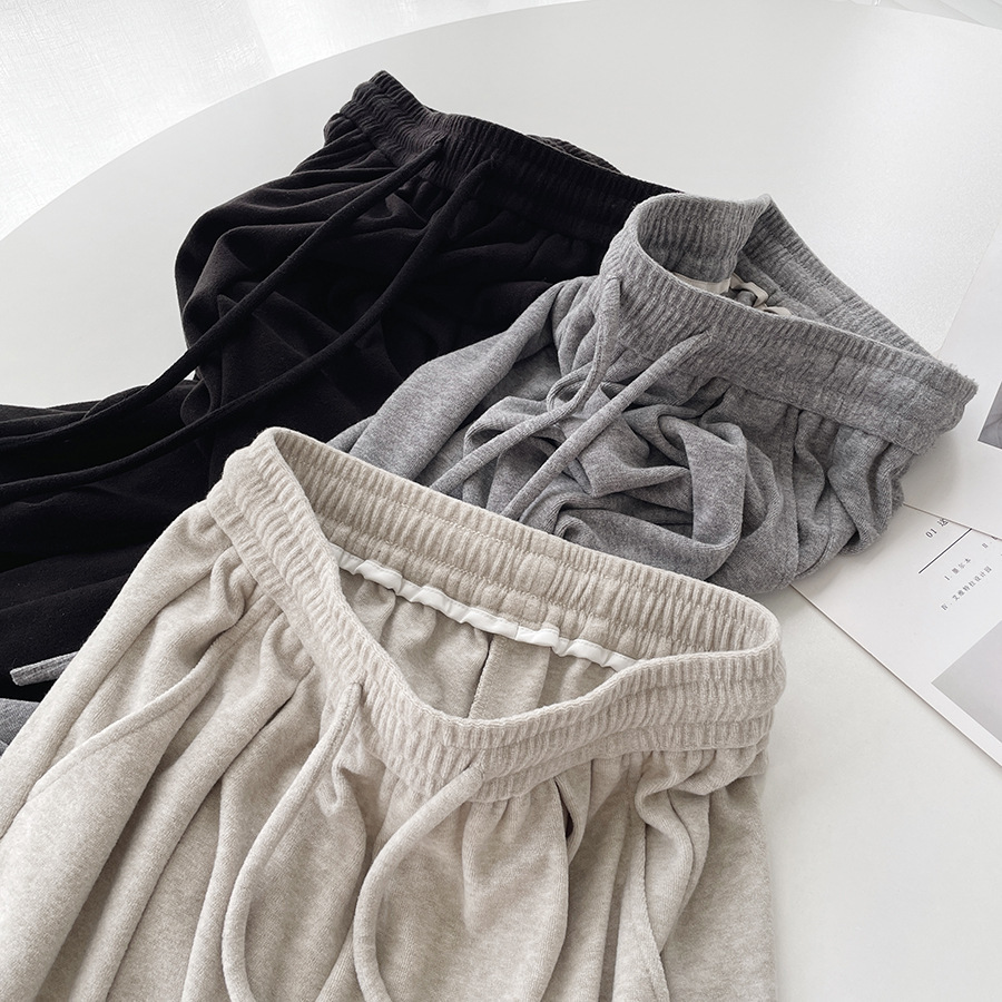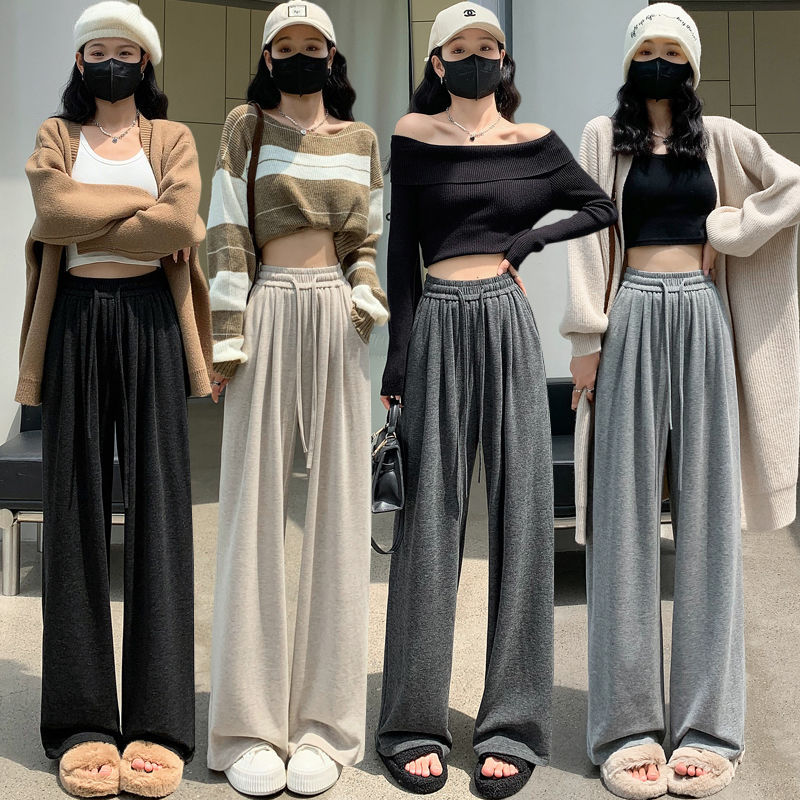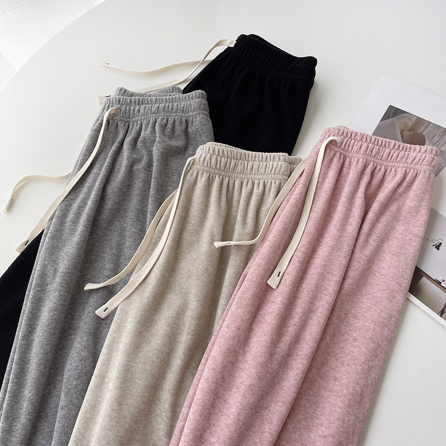 云朵糯米裤阔腿裤女2023秋冬仿羊绒宽松休闲裤软糯垂感遛遛拖地裤