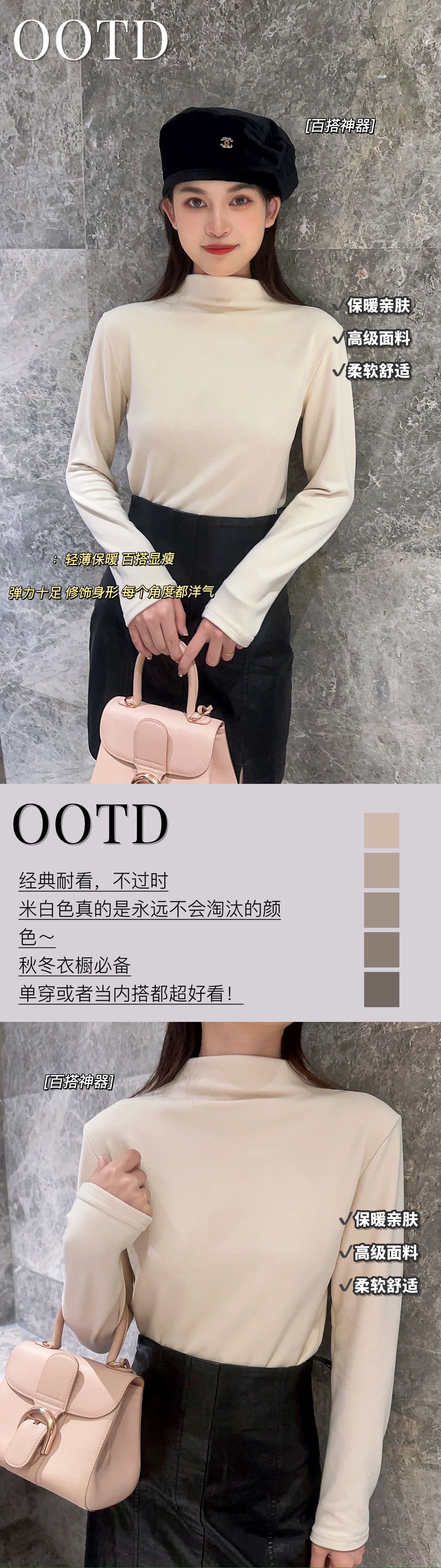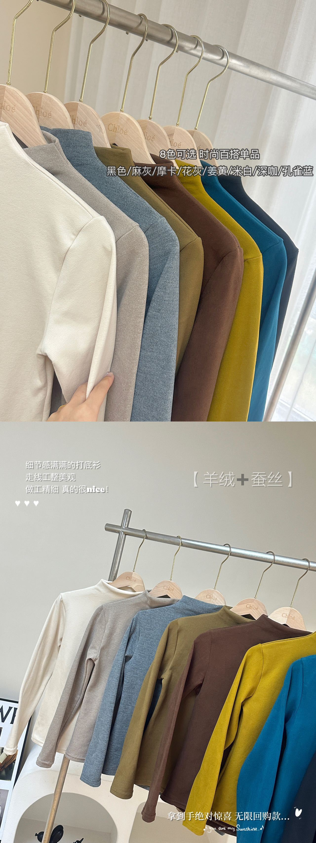 蚕丝羊绒养肤衣2023秋季新品半高领长袖打底衫百搭显瘦外穿秋上衣