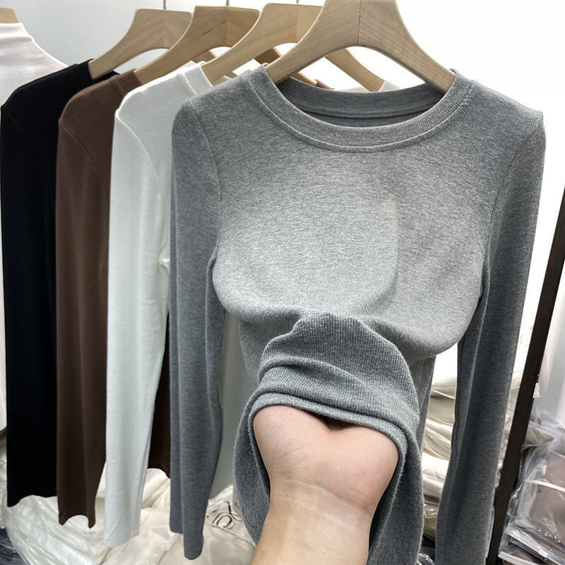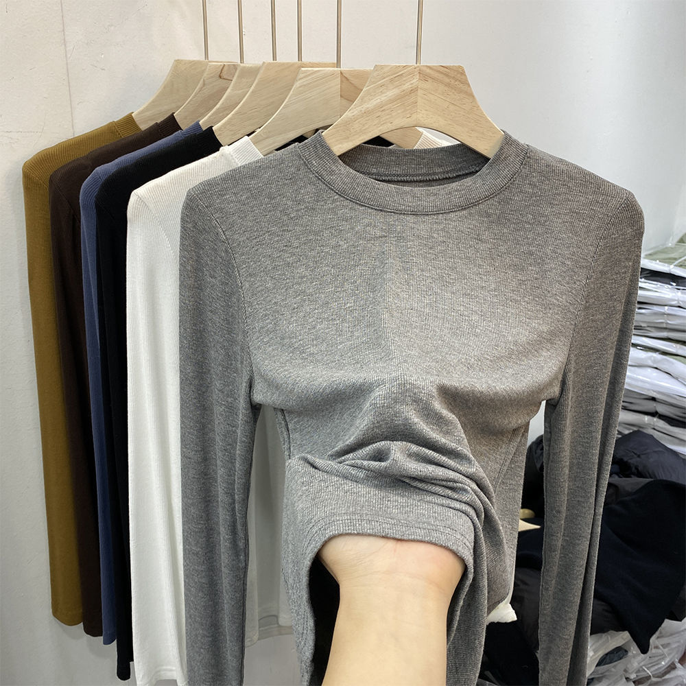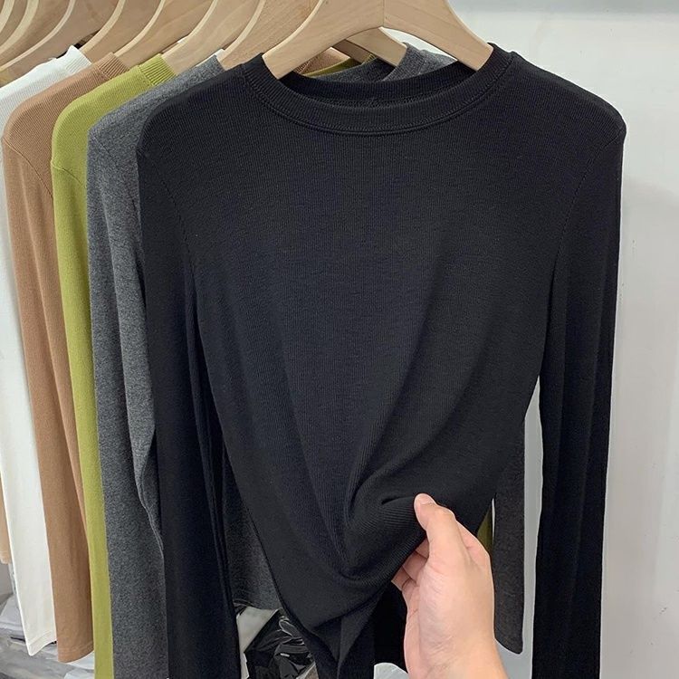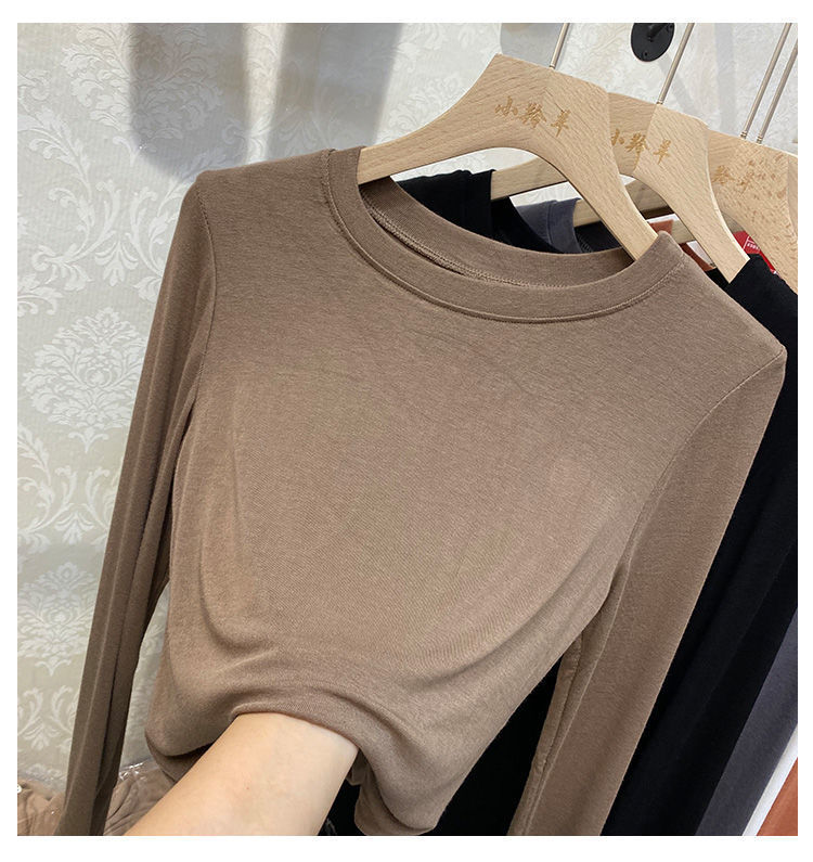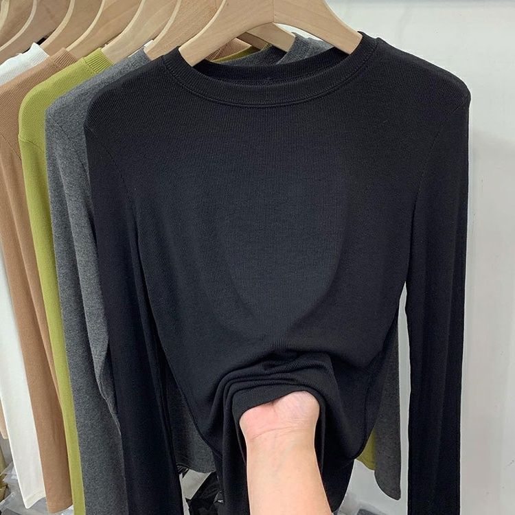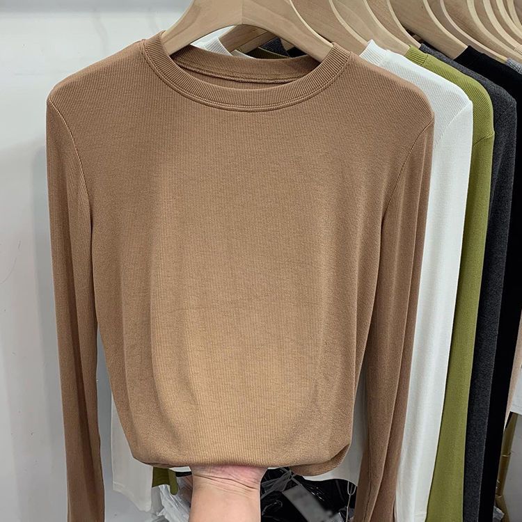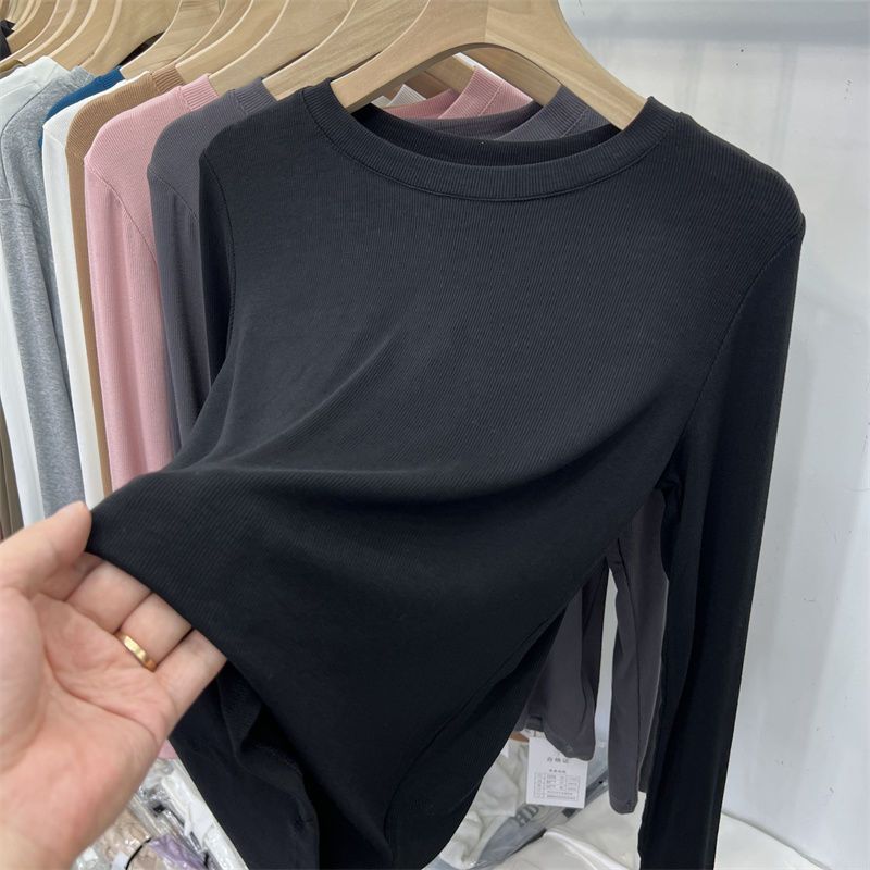 莫代尔螺纹长袖t恤内搭打底衫女春秋季新款百搭修身显瘦上衣外穿