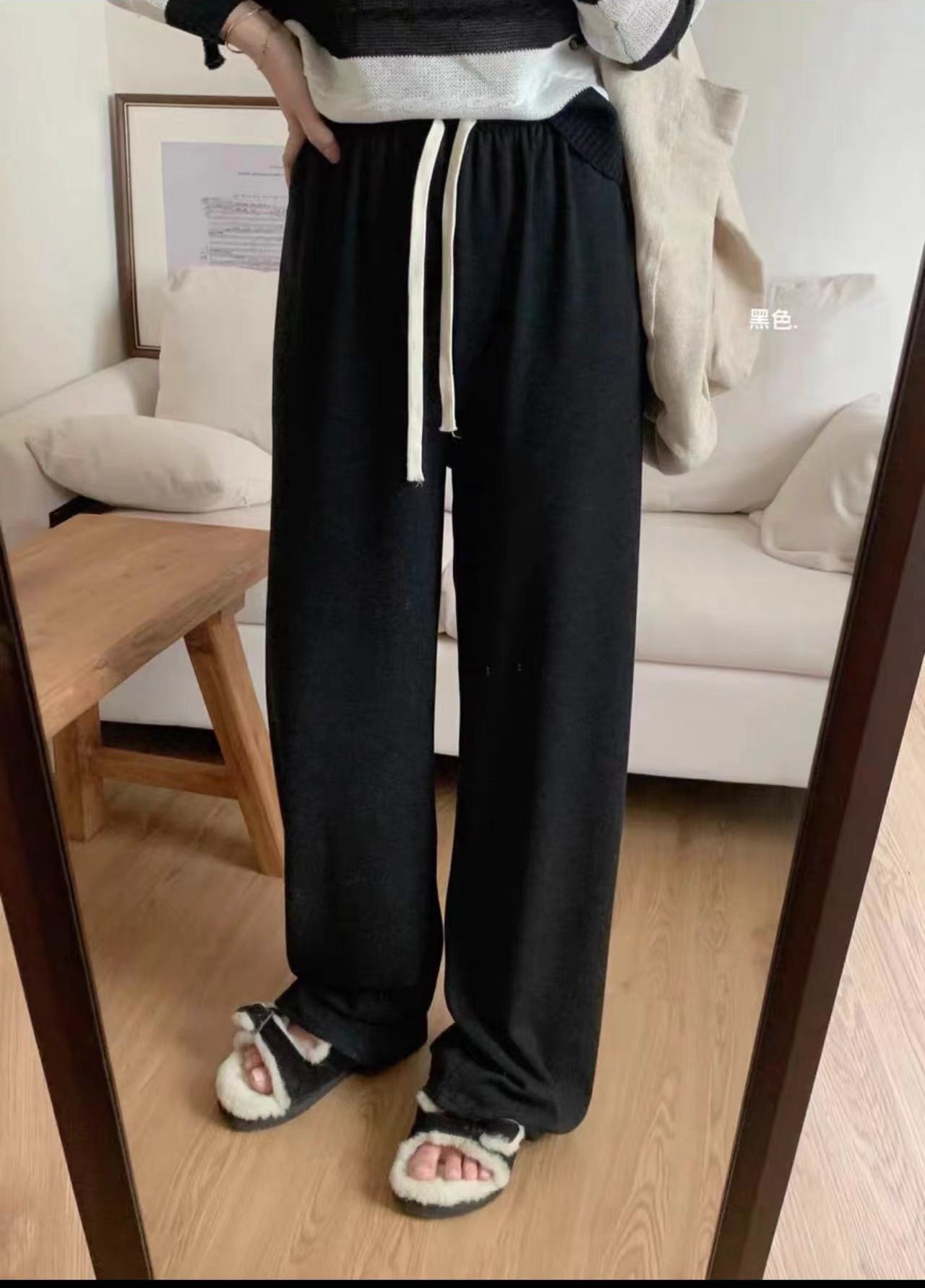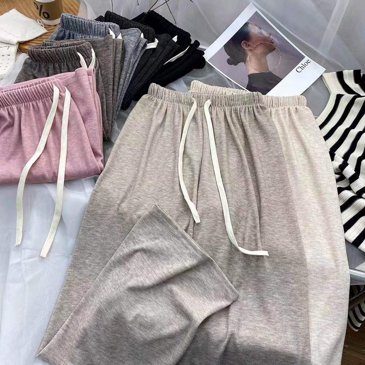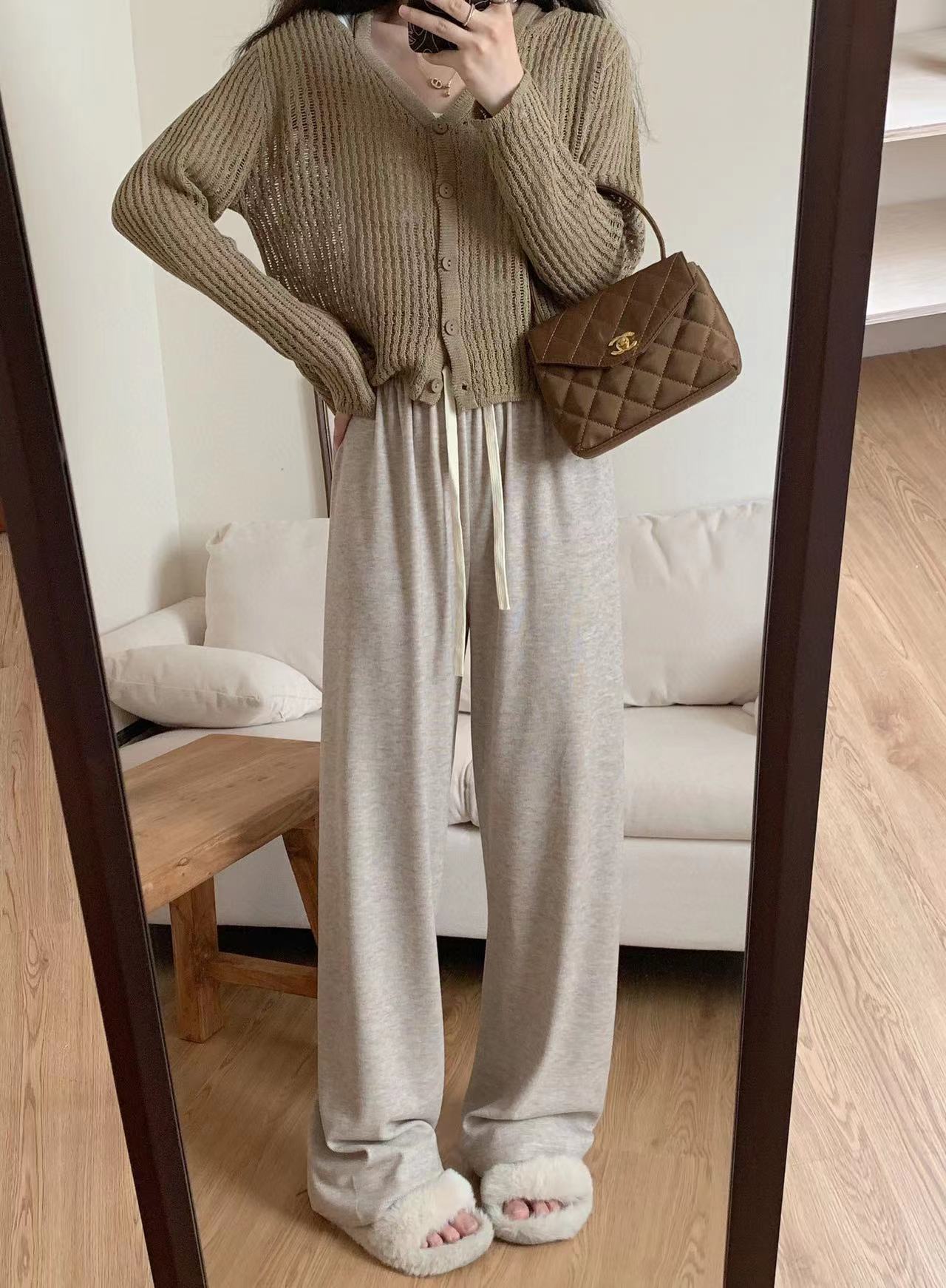 糯米溜溜裤外穿阔腿裤女2023秋季宽松高腰垂感直筒休闲裤百搭窄版