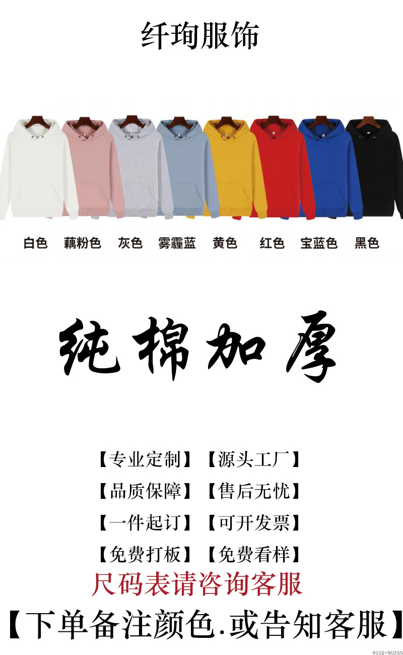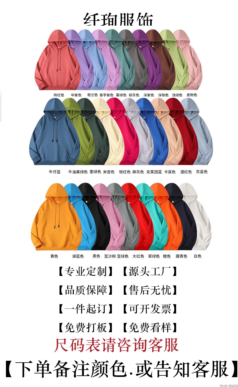 纯棉卫衣定制印字logo连帽工作服班服广告衫工衣团建服小批量订做