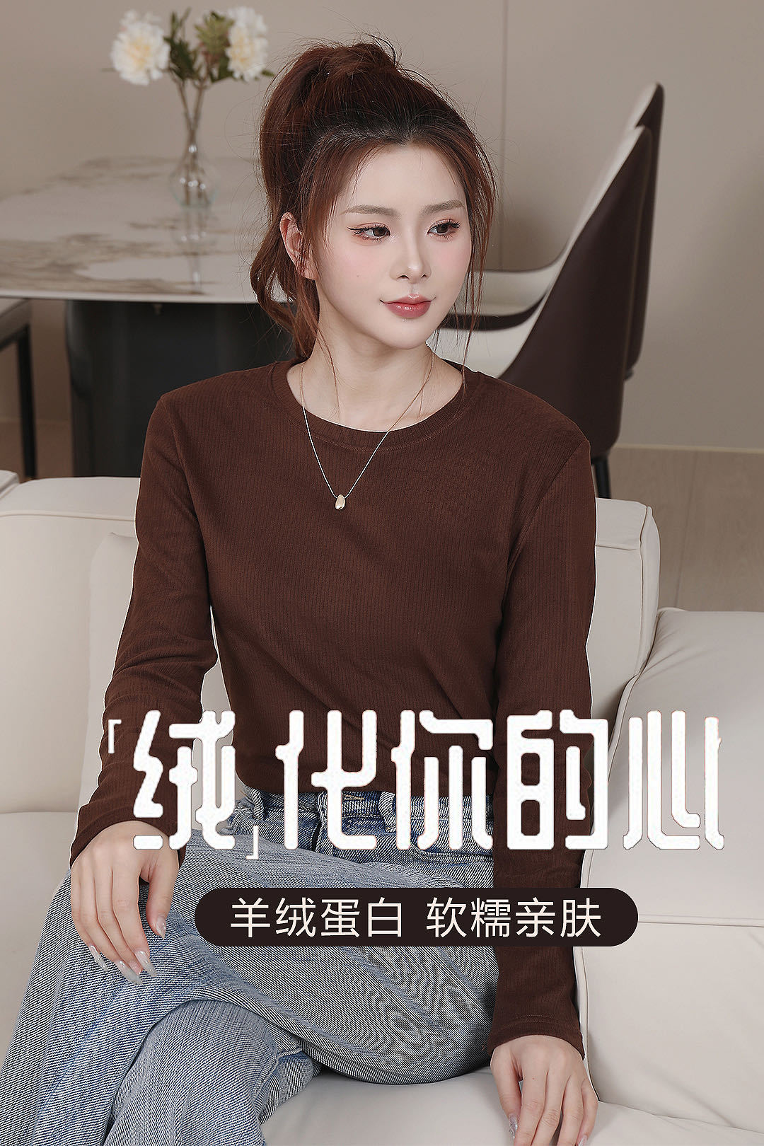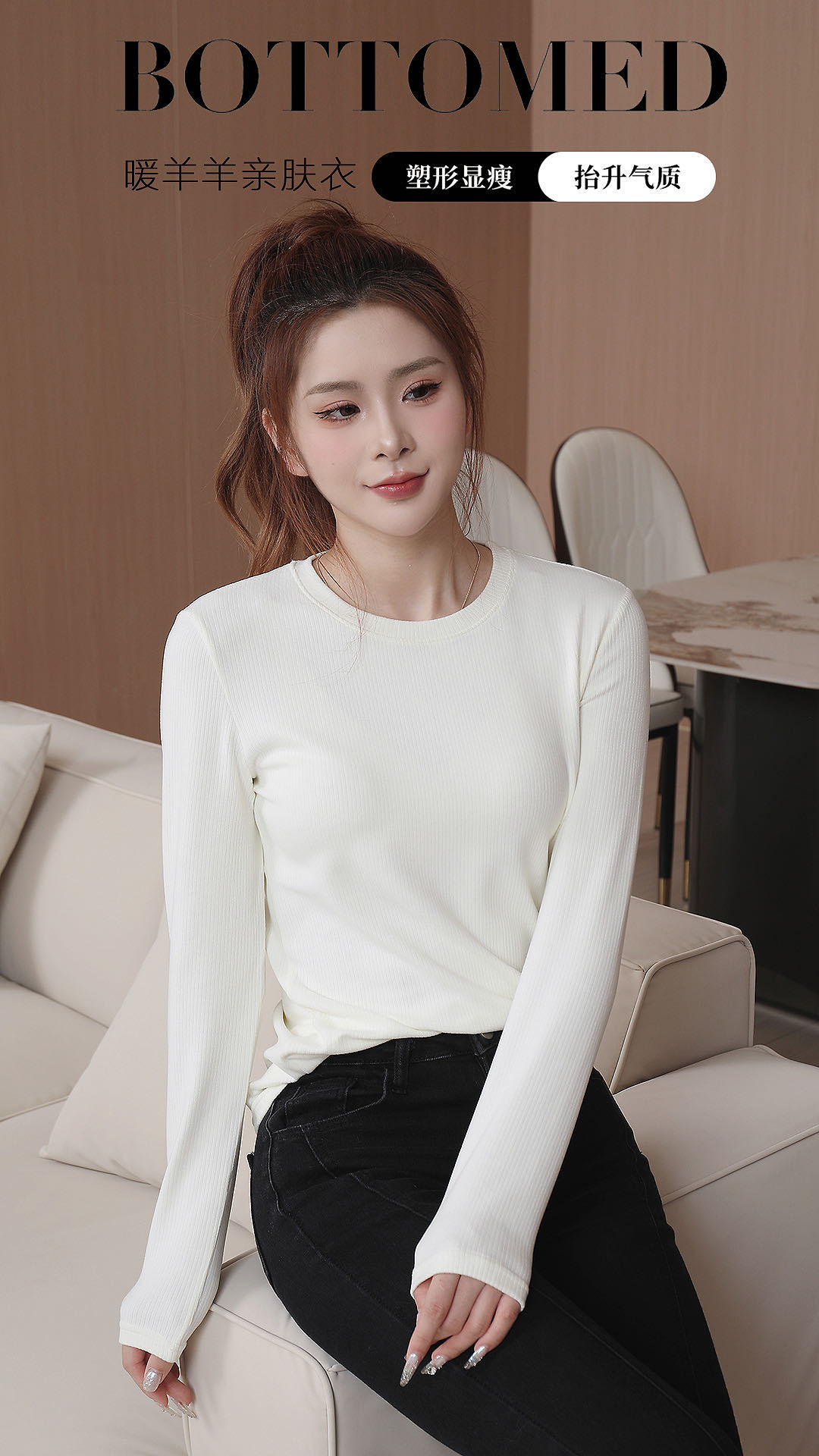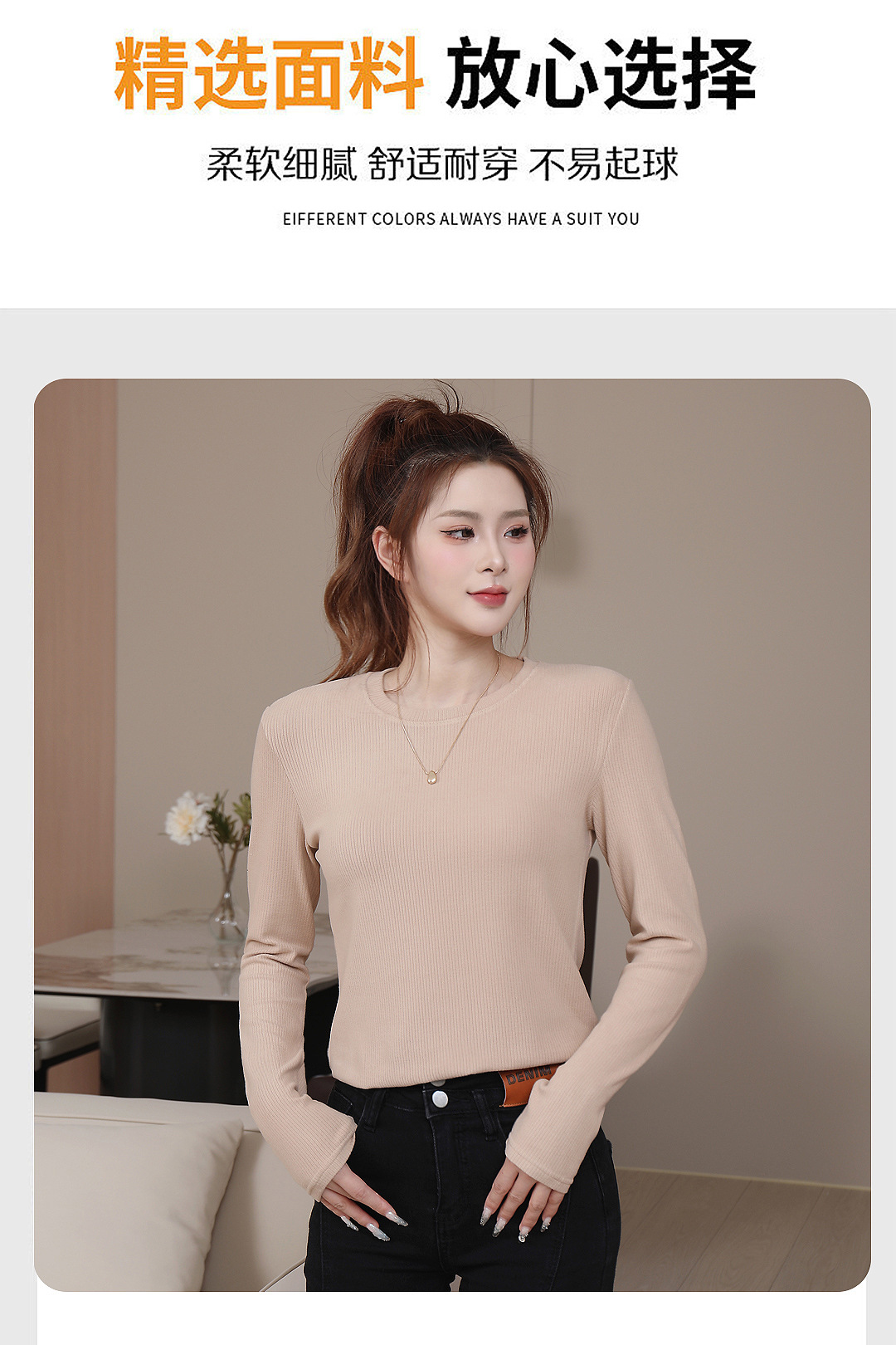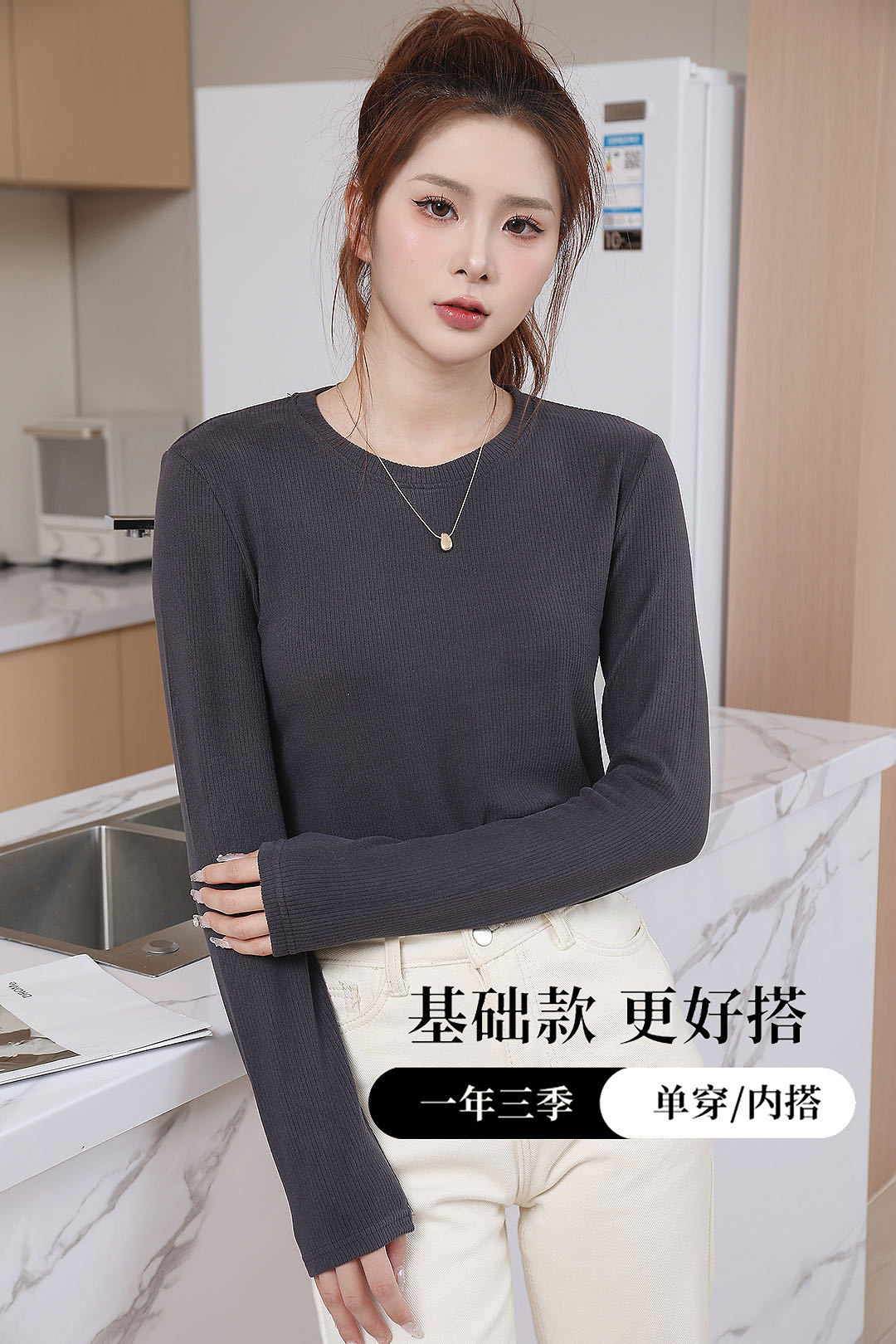 新款纯色羊绒亲肤条纹针织女士套头打底衫长袖圆领女上衣T恤修身