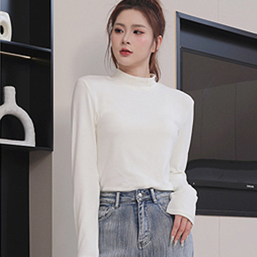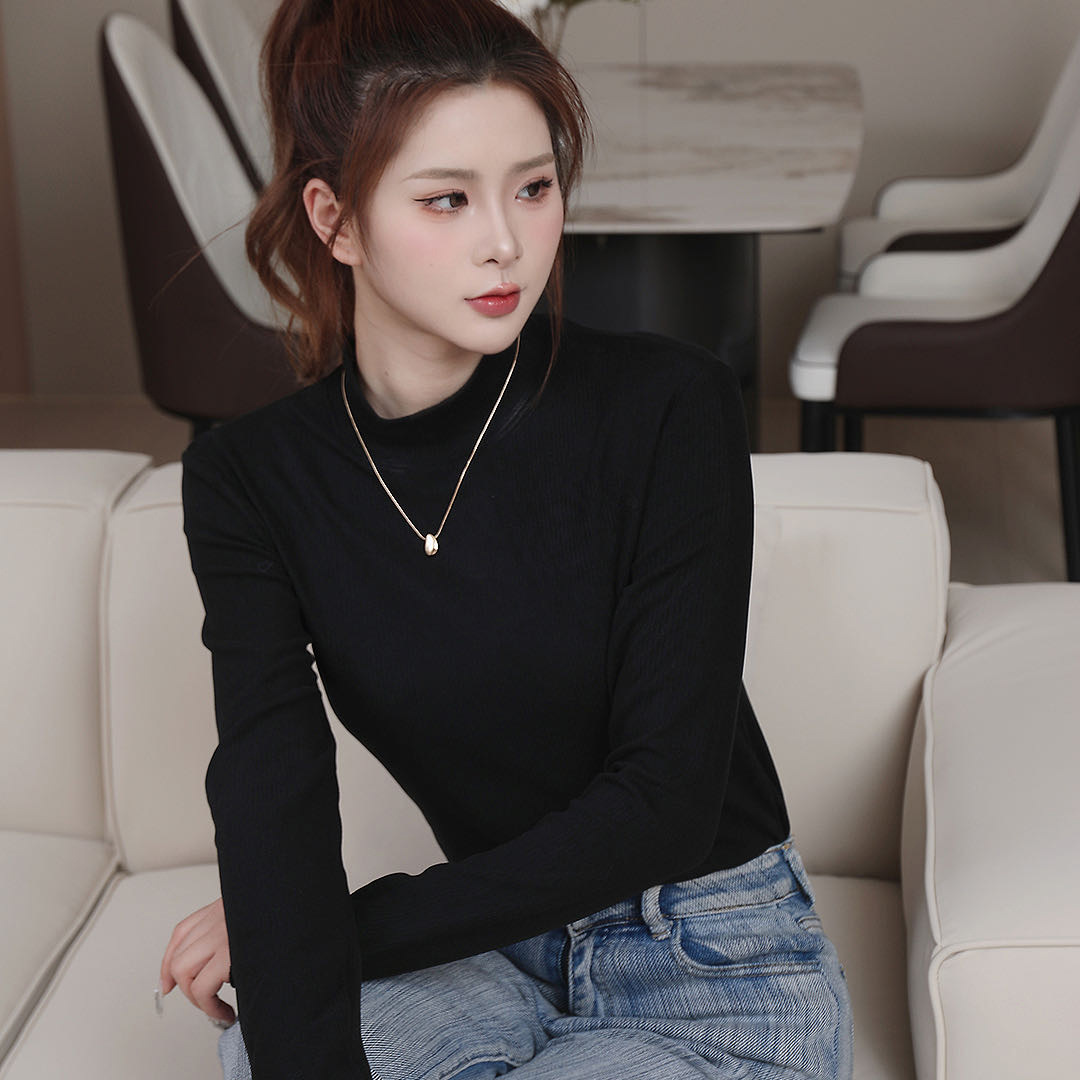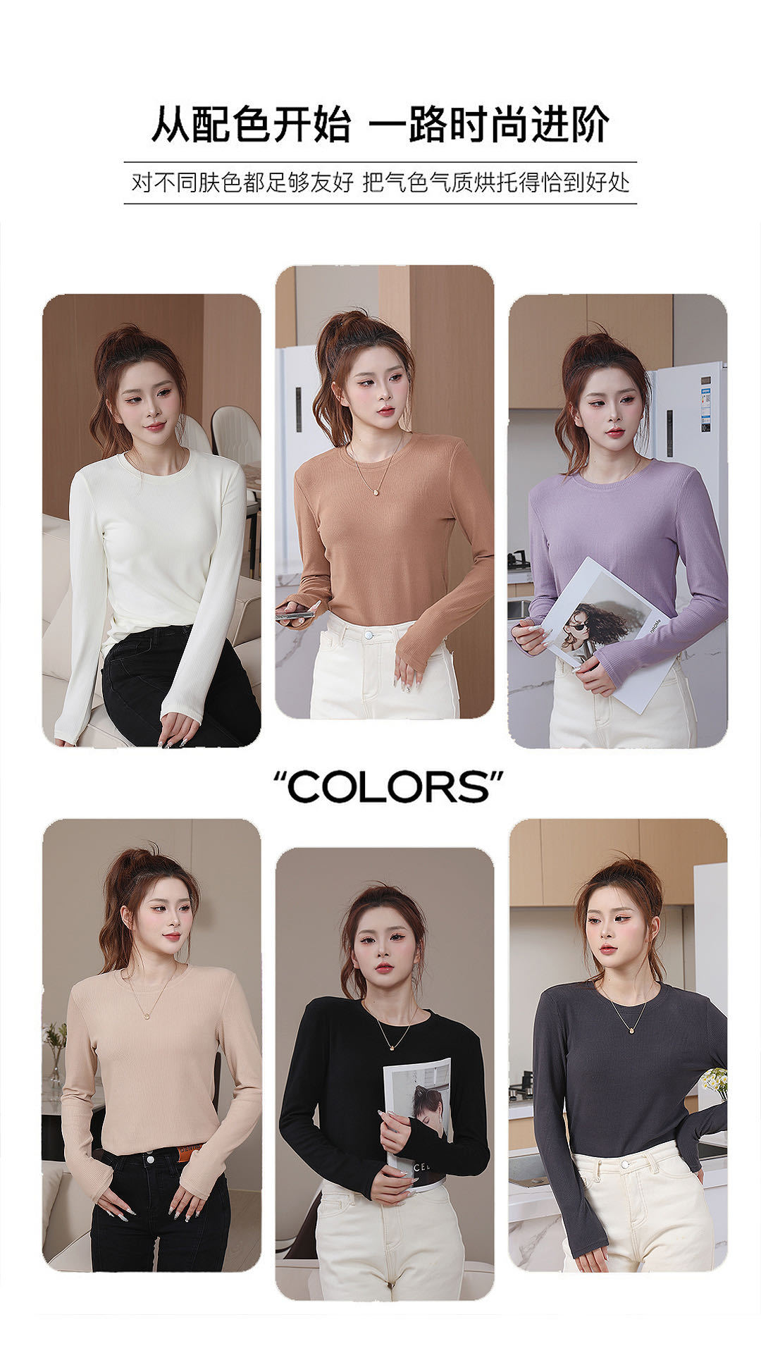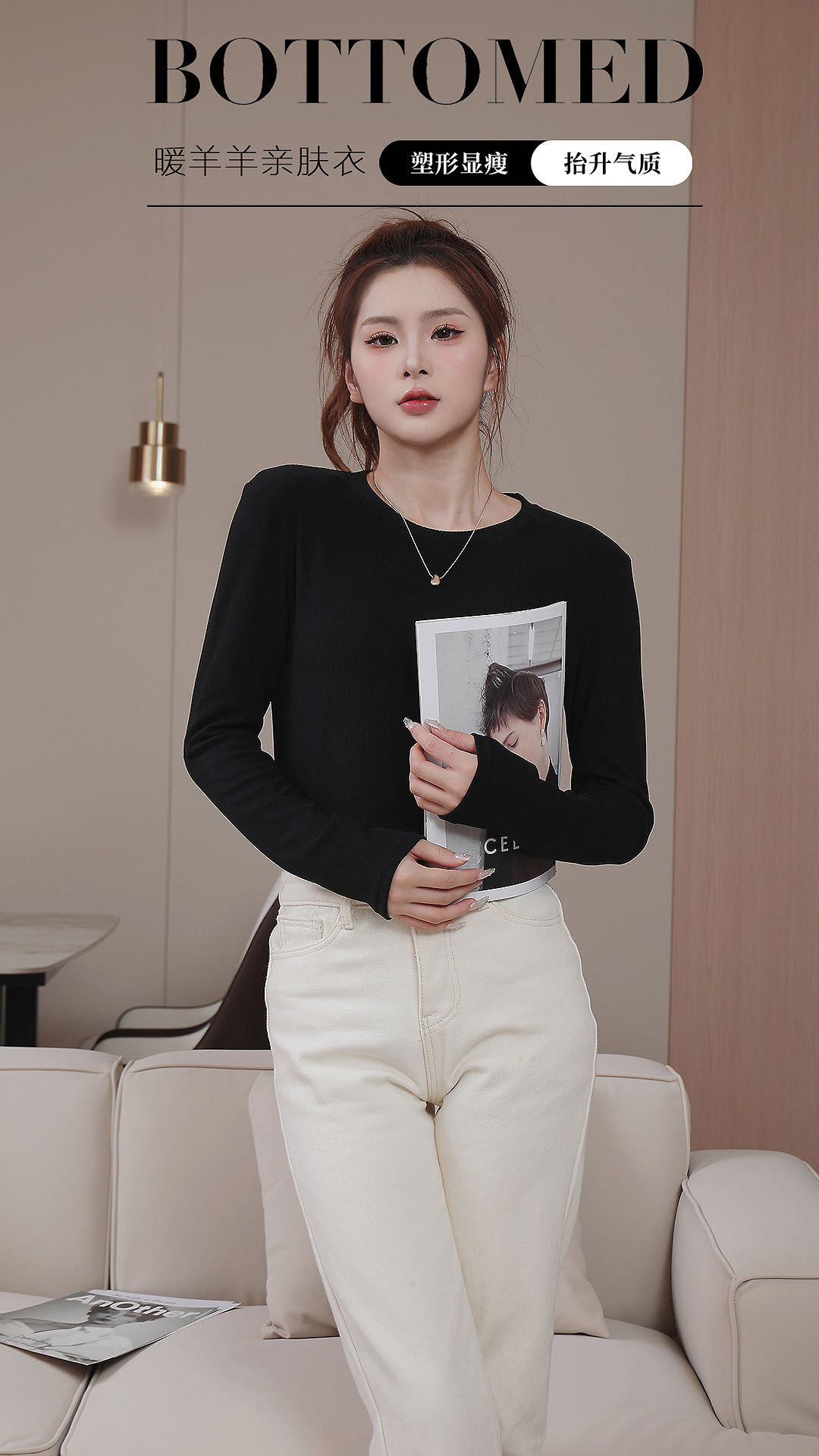 新款纯色羊绒亲肤条纹针织女士套头打底衫长袖圆领女上衣T恤修身