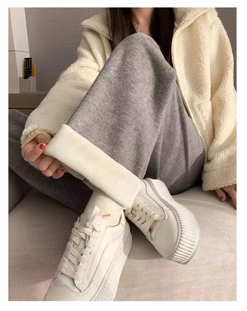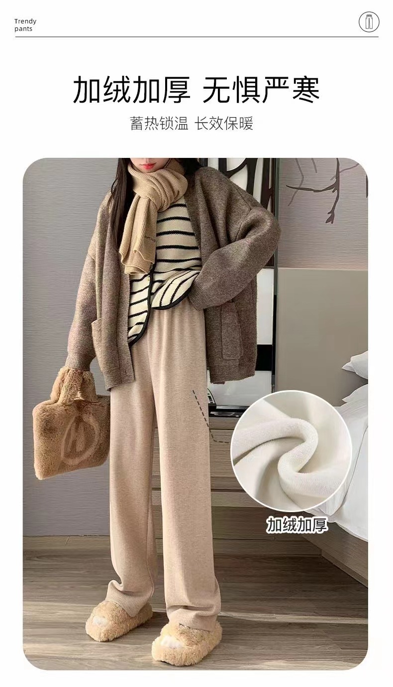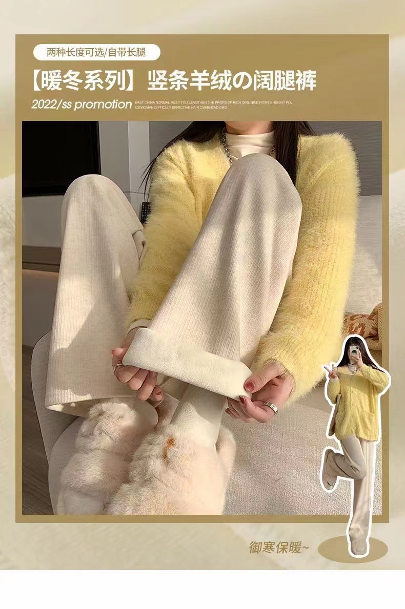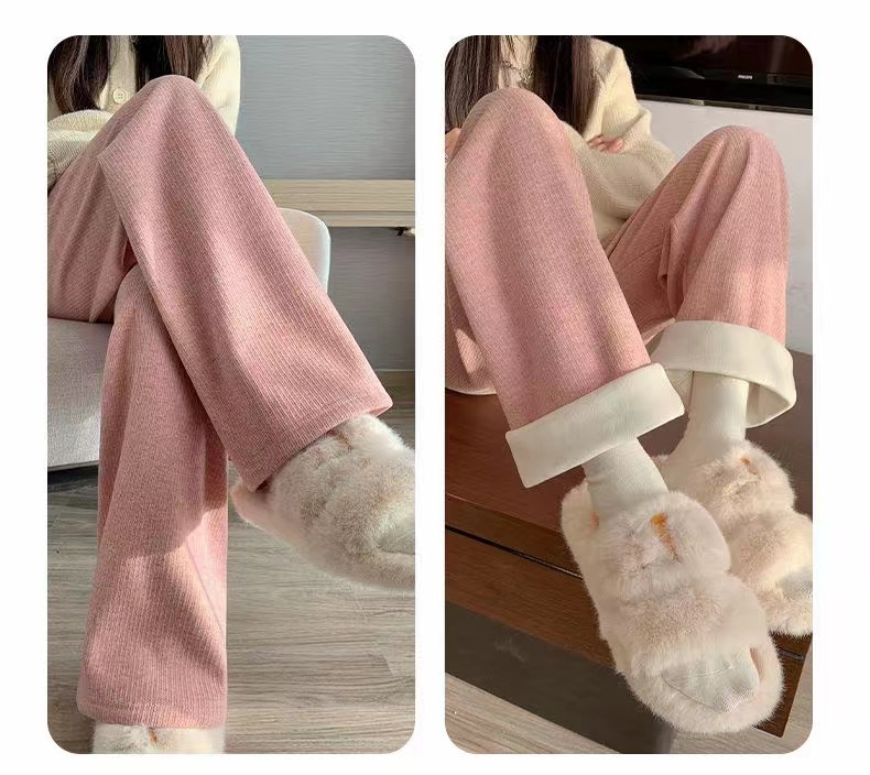 秋冬款舒适加绒加厚羊绒直筒阔腿遛弯裤女士宽松家居长裤休闲裤子