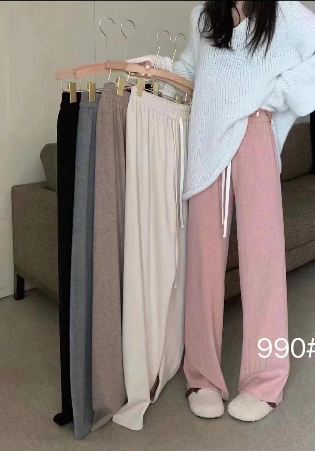 春款舒适仿羊绒直筒阔腿遛弯裤女士港风松紧抽绳长裤休闲拖地裤子