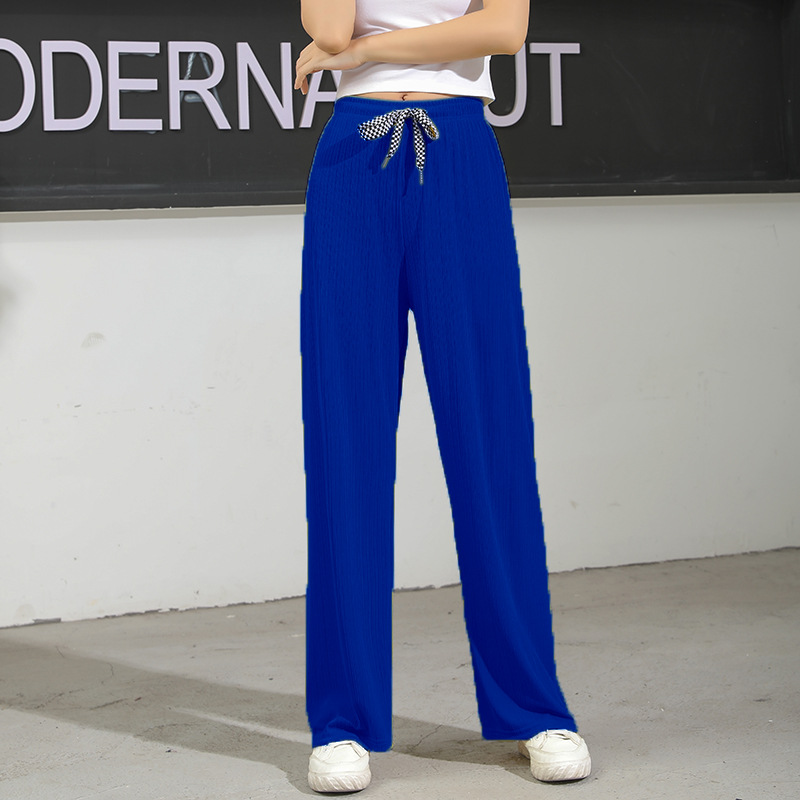 夏季垂坠冰丝阔腿遛弯裤女式直筒inch冰冰裤高腰长裤休闲拖地裤子