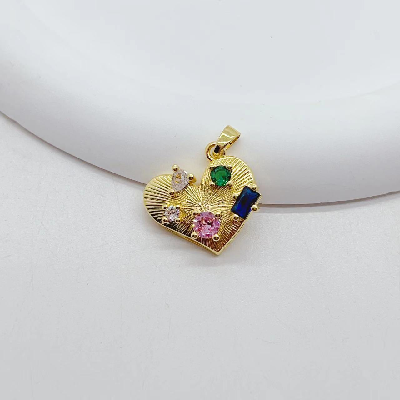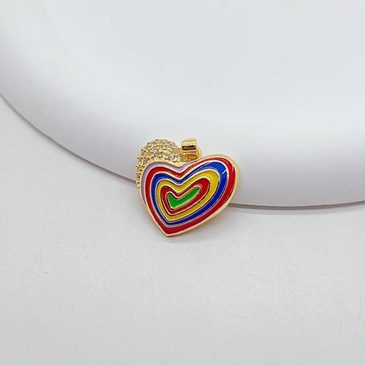欧美跨境新品时尚个性小众设计桃心吊微镶锆石爱心配饰DIY电镀18K