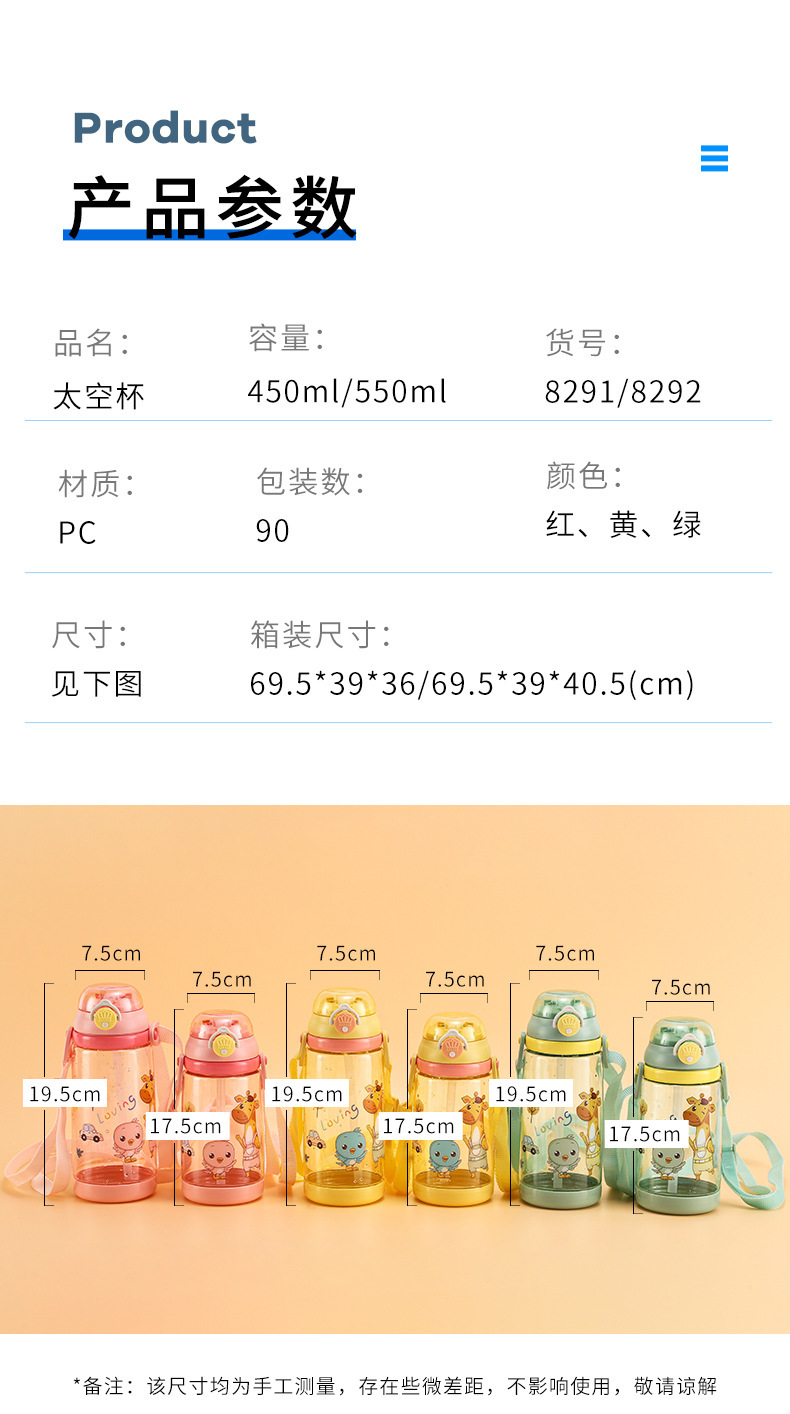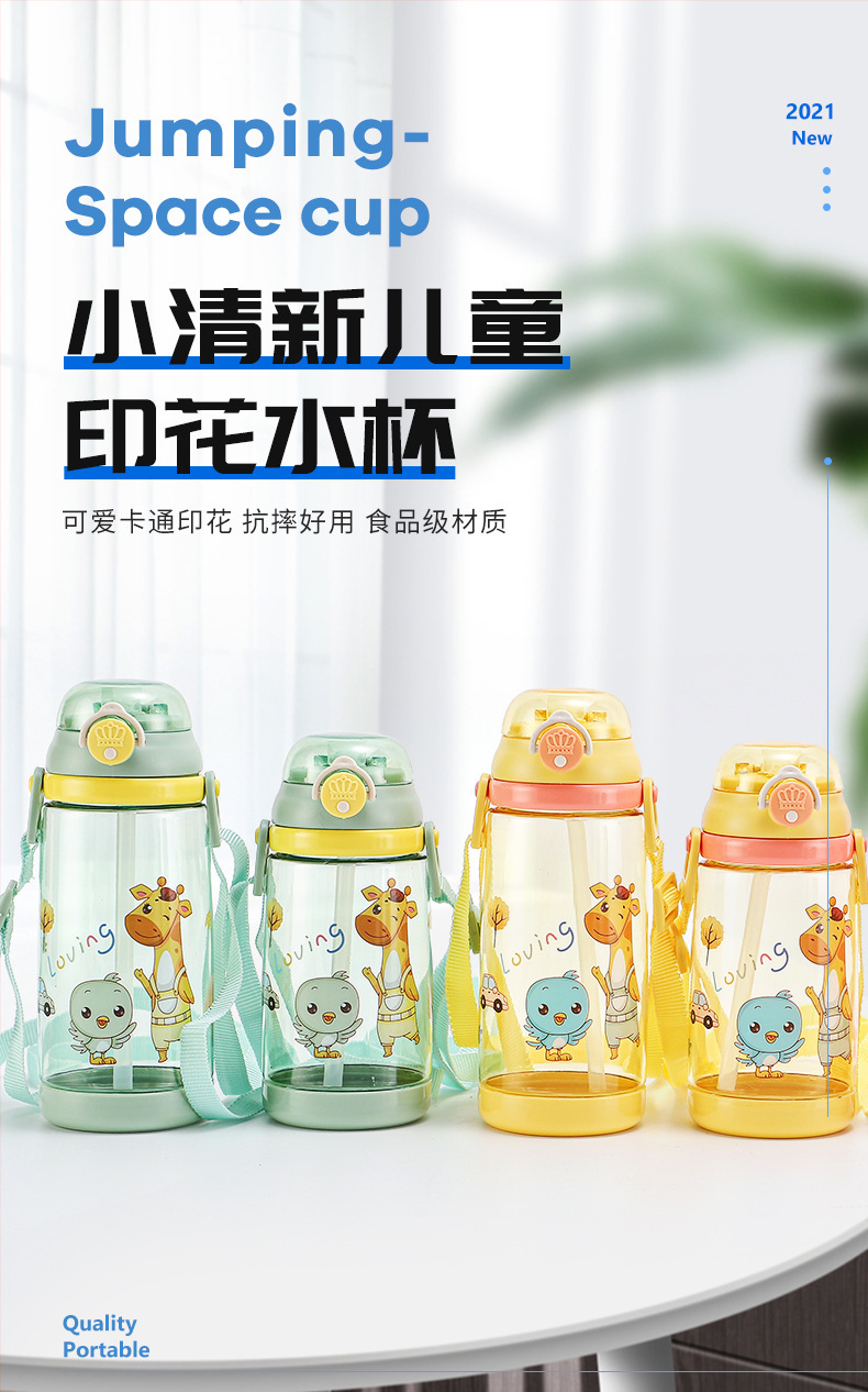 夏季新款双饮透明大肚塑料水杯户外运动水壶随手带吸管太空杯子