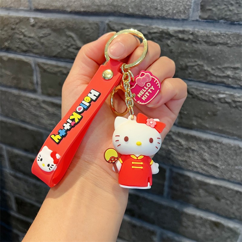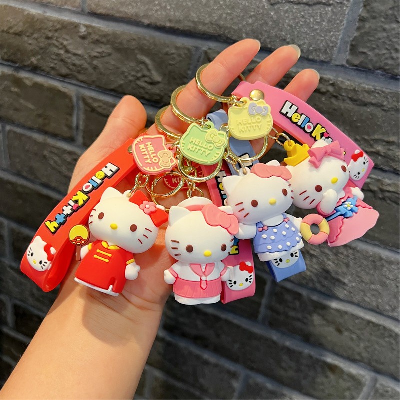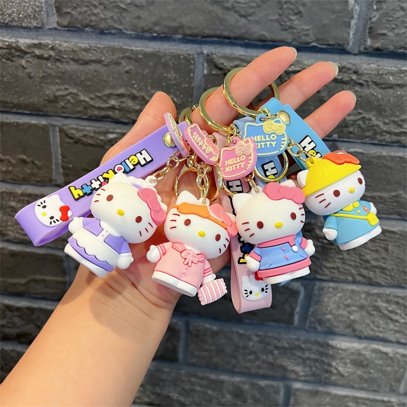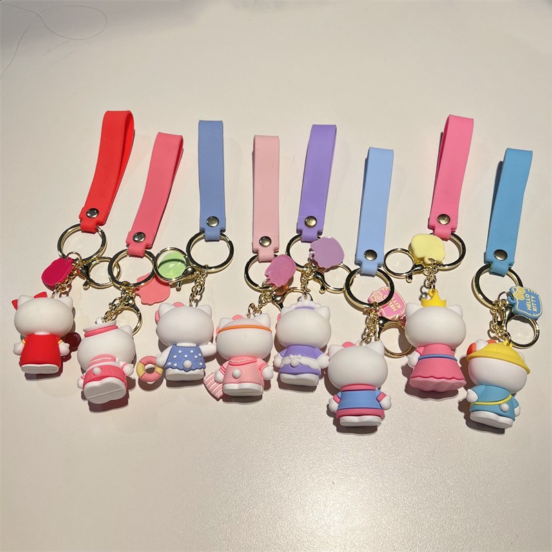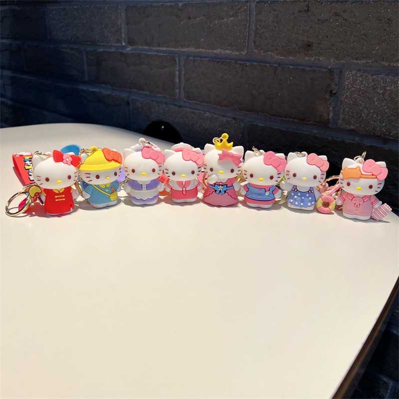 创意卡通变装kt钥匙扣可爱三丽鸥派对kt钥匙链粉嫩小猫咪挂件批发