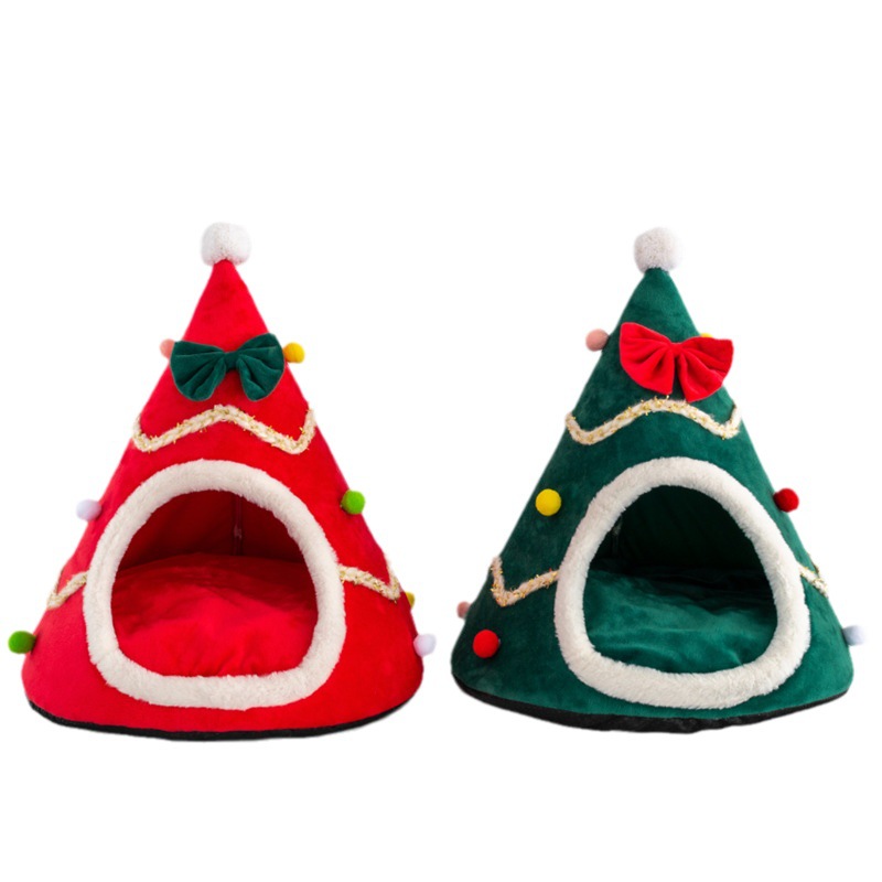 狗窝圣诞树造型宠物窝帐篷秋冬保暖创意国潮新年风半封闭式猫窝