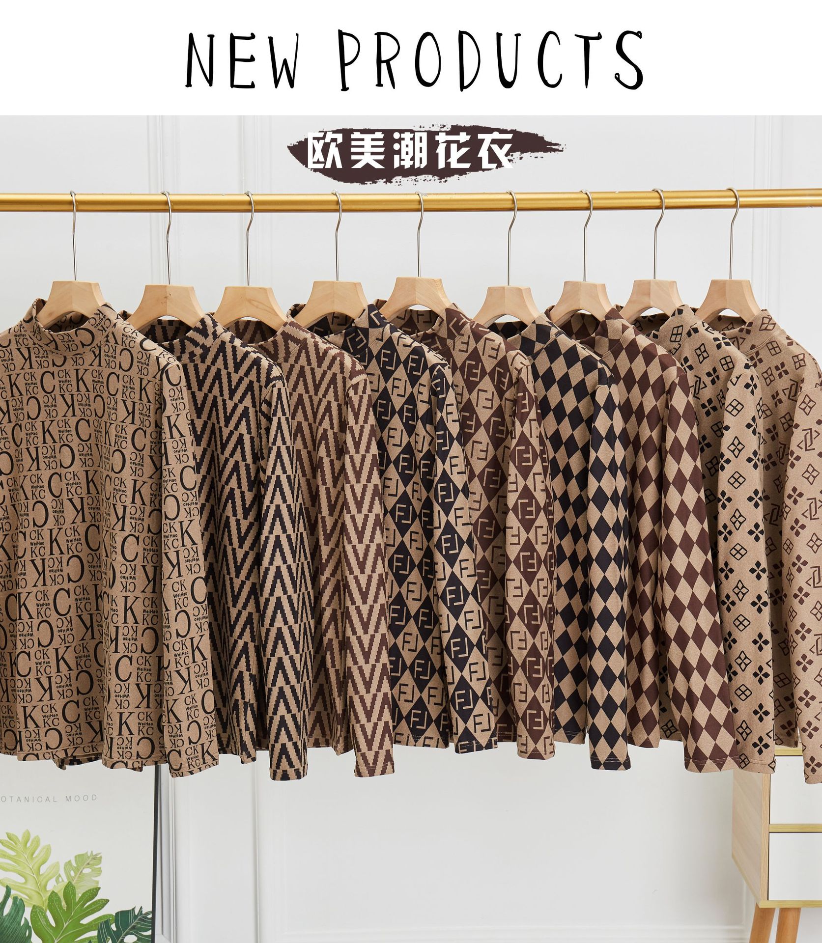 2023新款针织打底衫美式字母阳离子磨毛套头打底衫女百搭批发