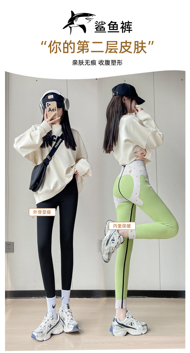 加厚鲨鱼裤女2023秋冬新款外穿加绒打底裤弹力收腹提臀芭比裤保暖