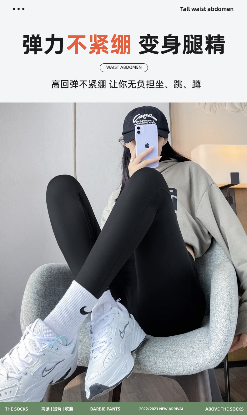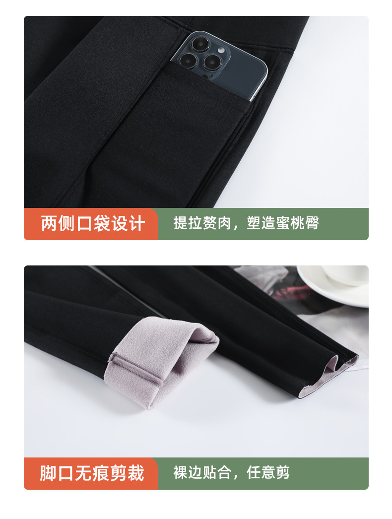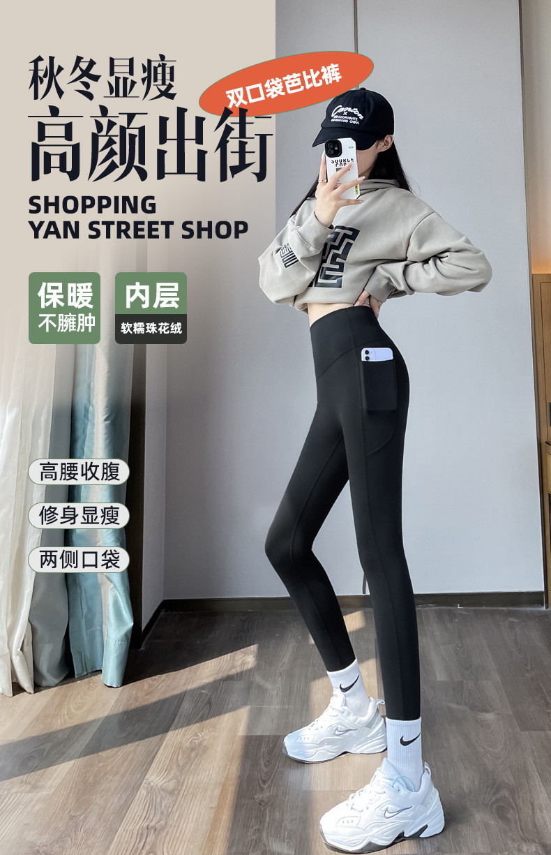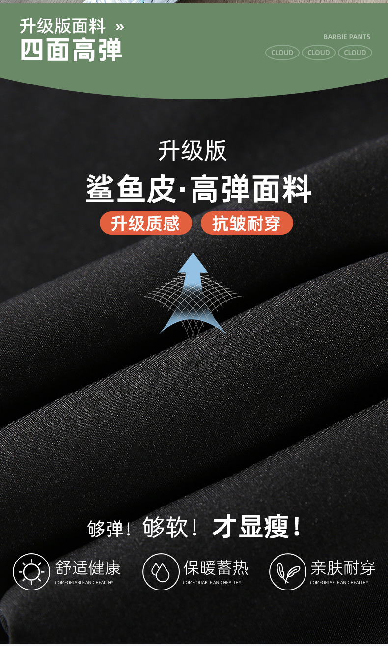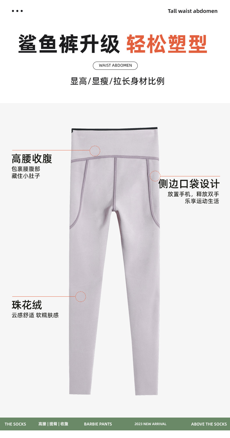 双口袋手机裤女秋冬新款加厚加绒鲨鱼裤高腰收腹芭比裤弹力显瘦