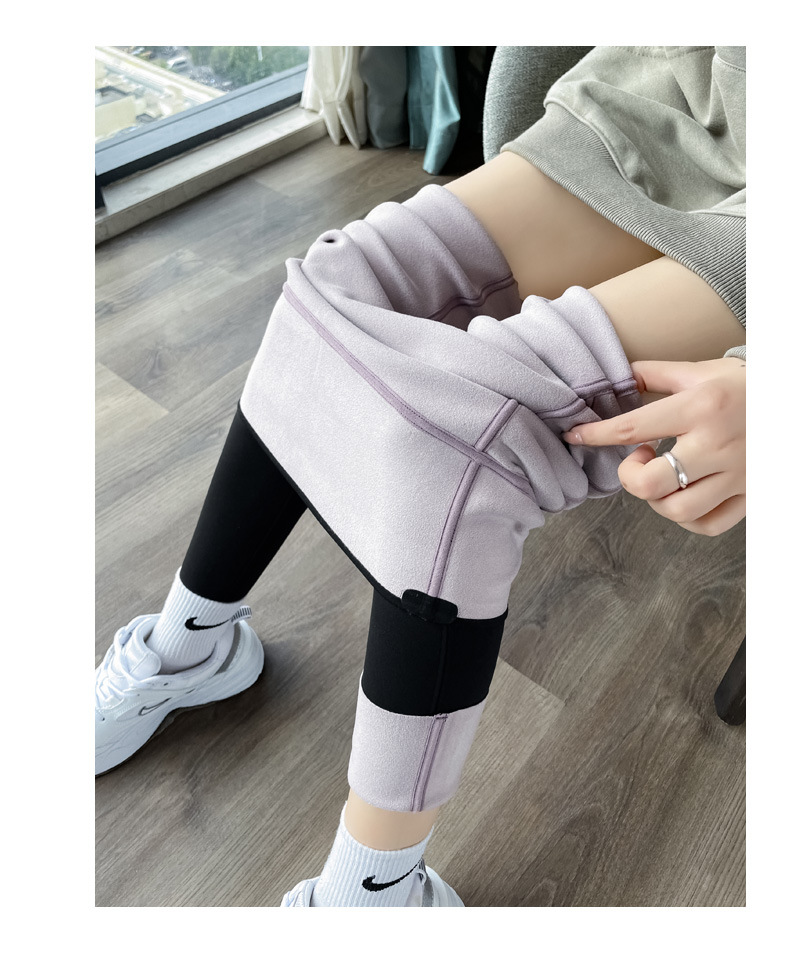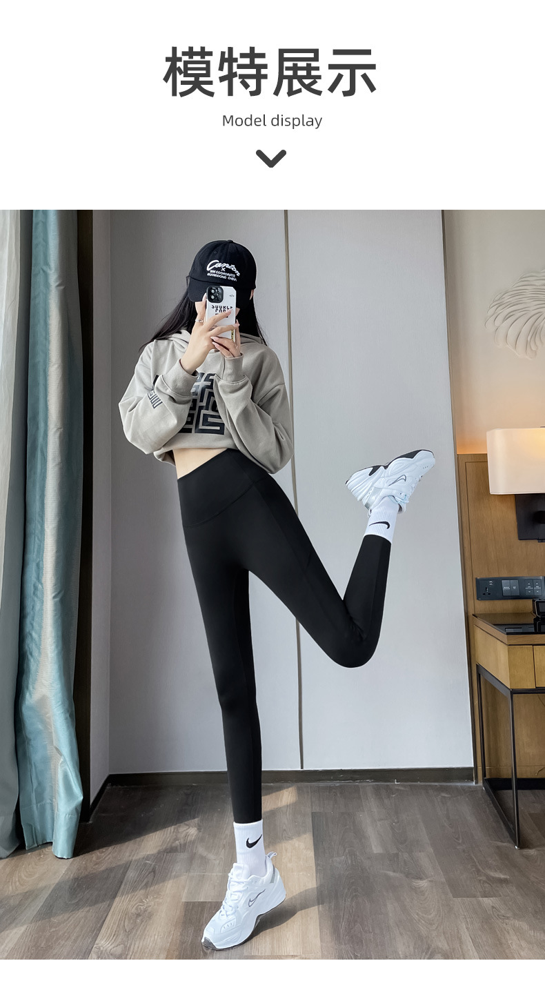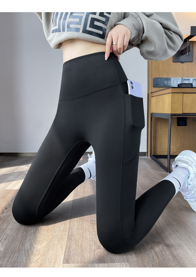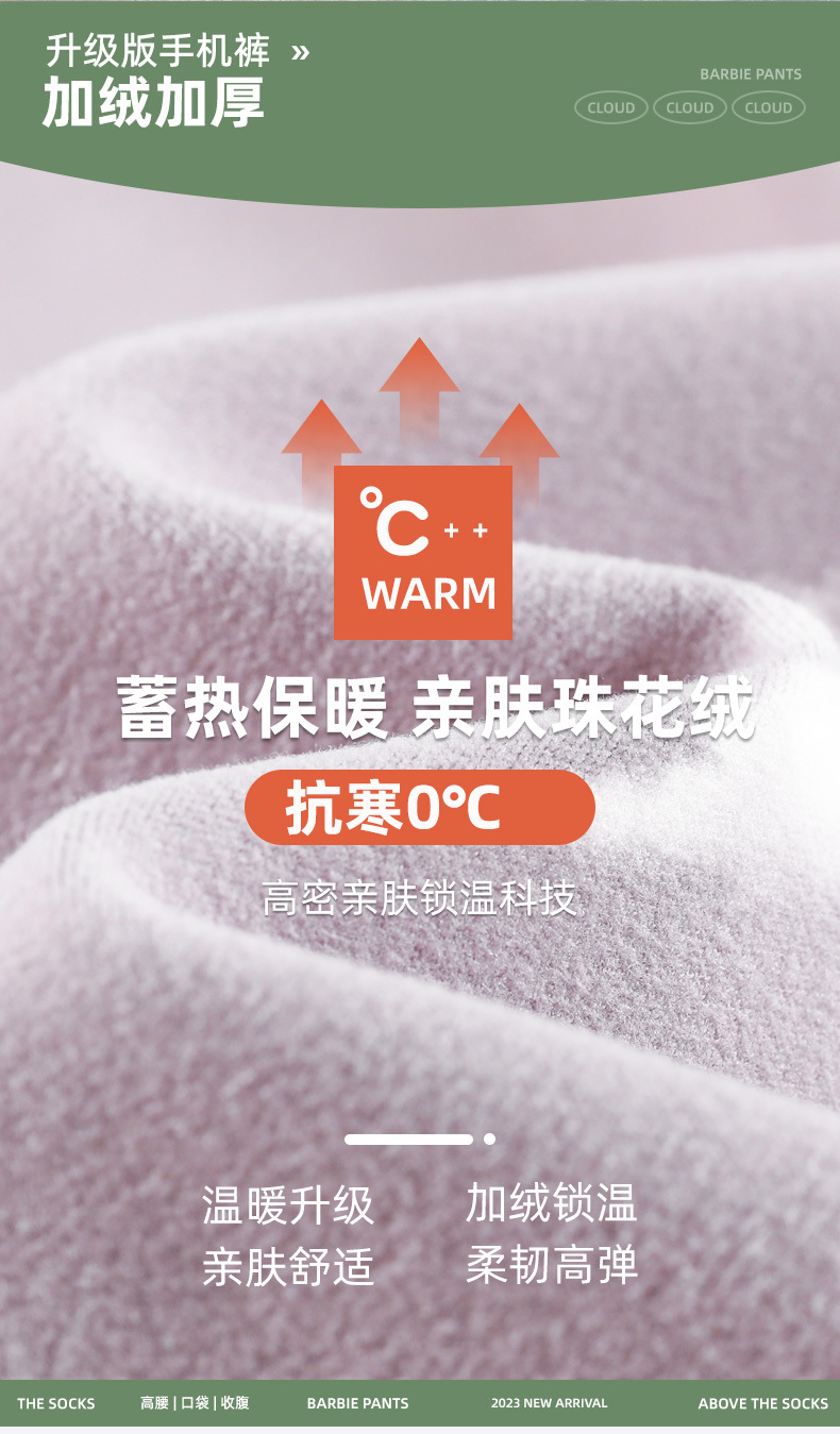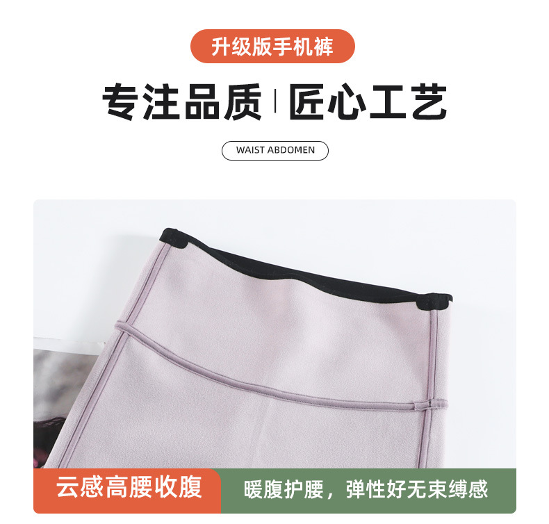 双口袋手机裤女秋冬新款加厚加绒鲨鱼裤高腰收腹芭比裤弹力显瘦