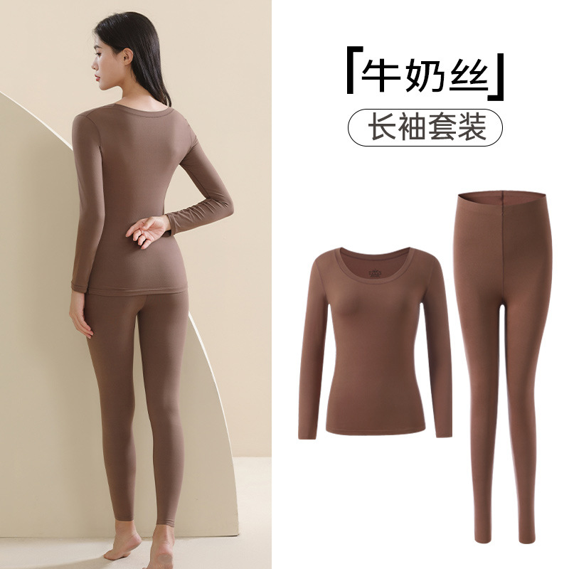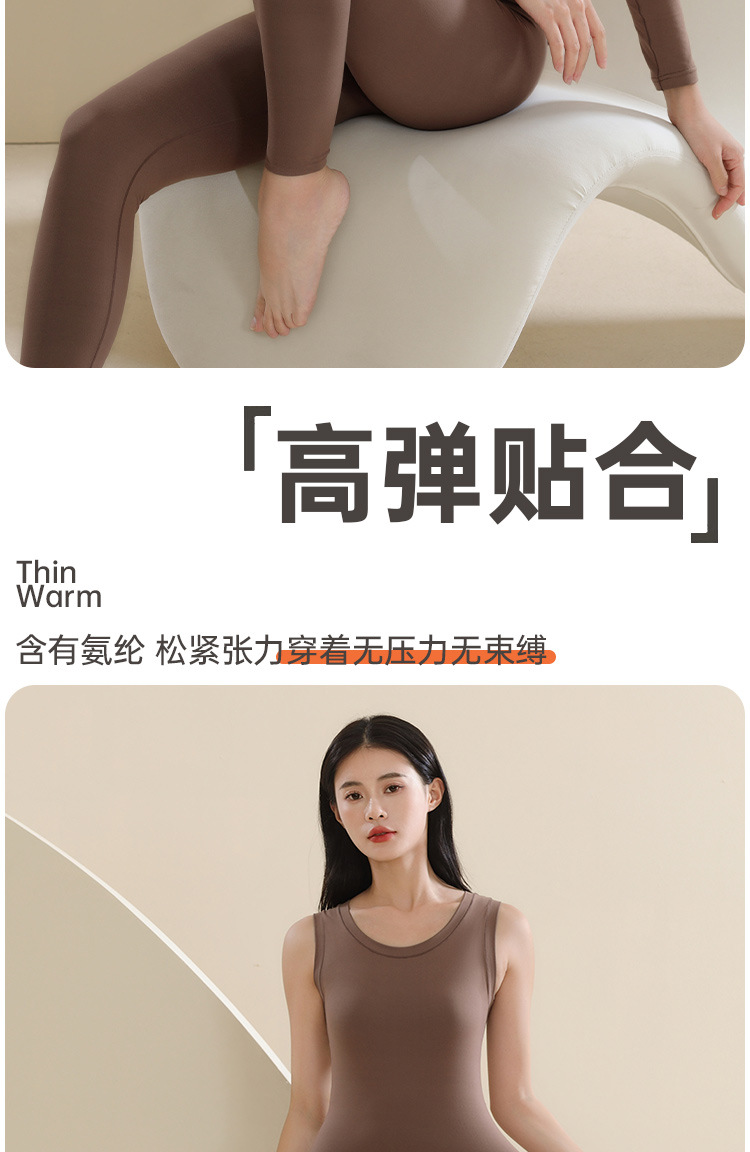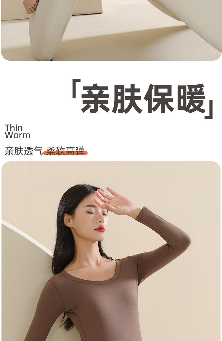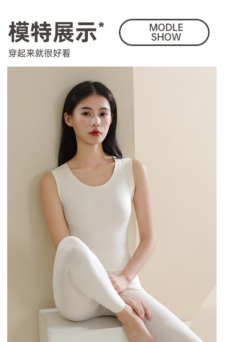 无痕发热保暖内衣女高弹打底衫长袖背心德绒套装秋冬牛奶丝美肤衣