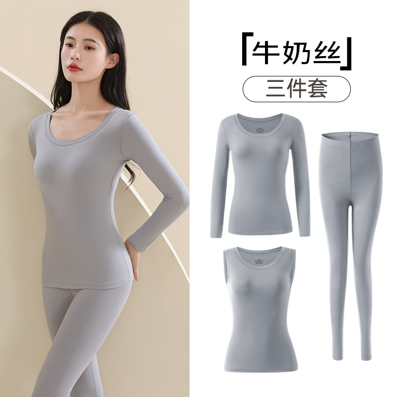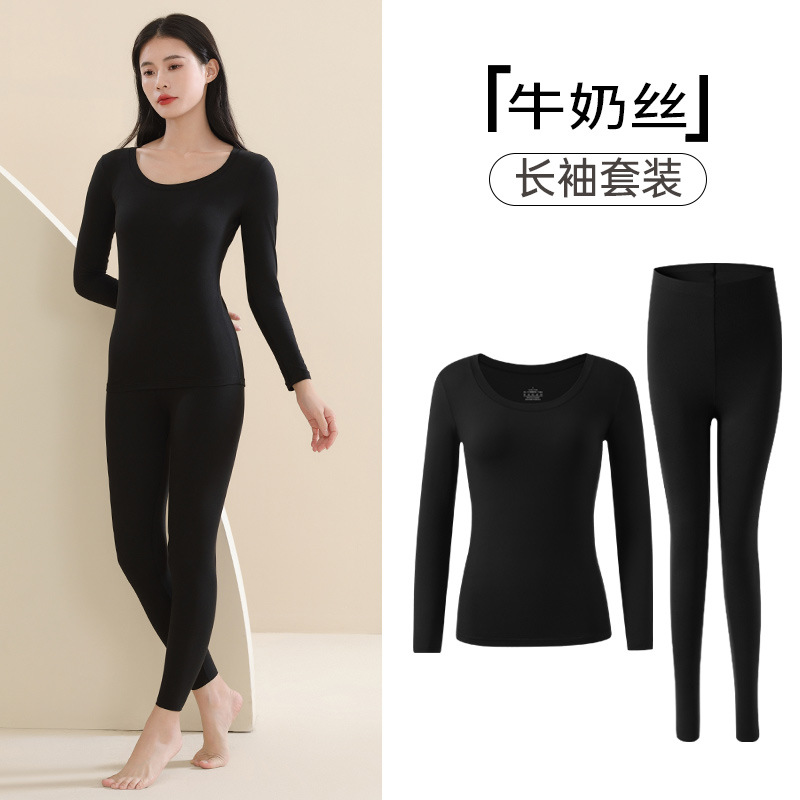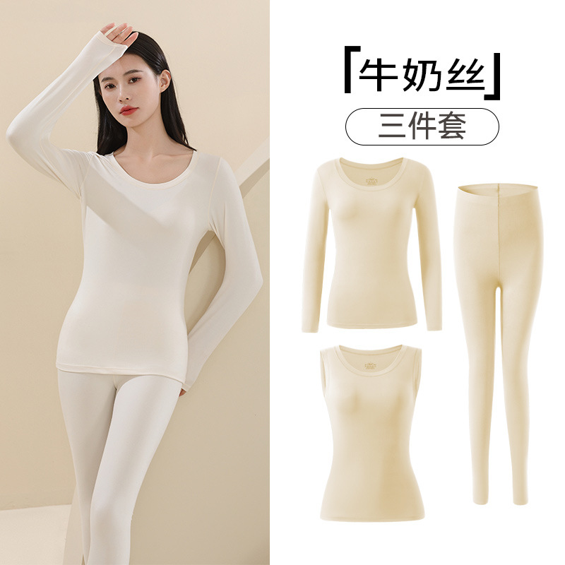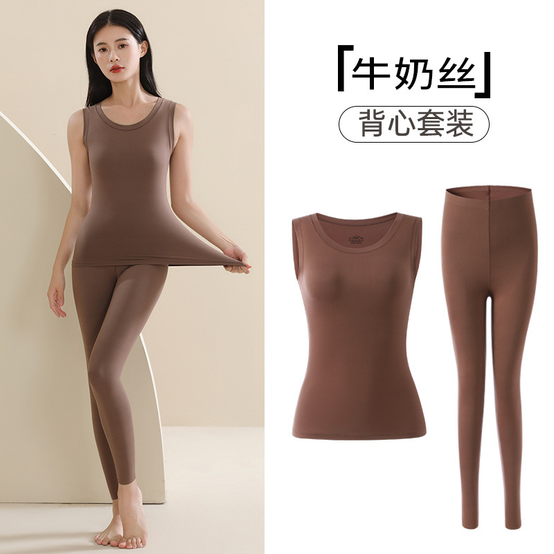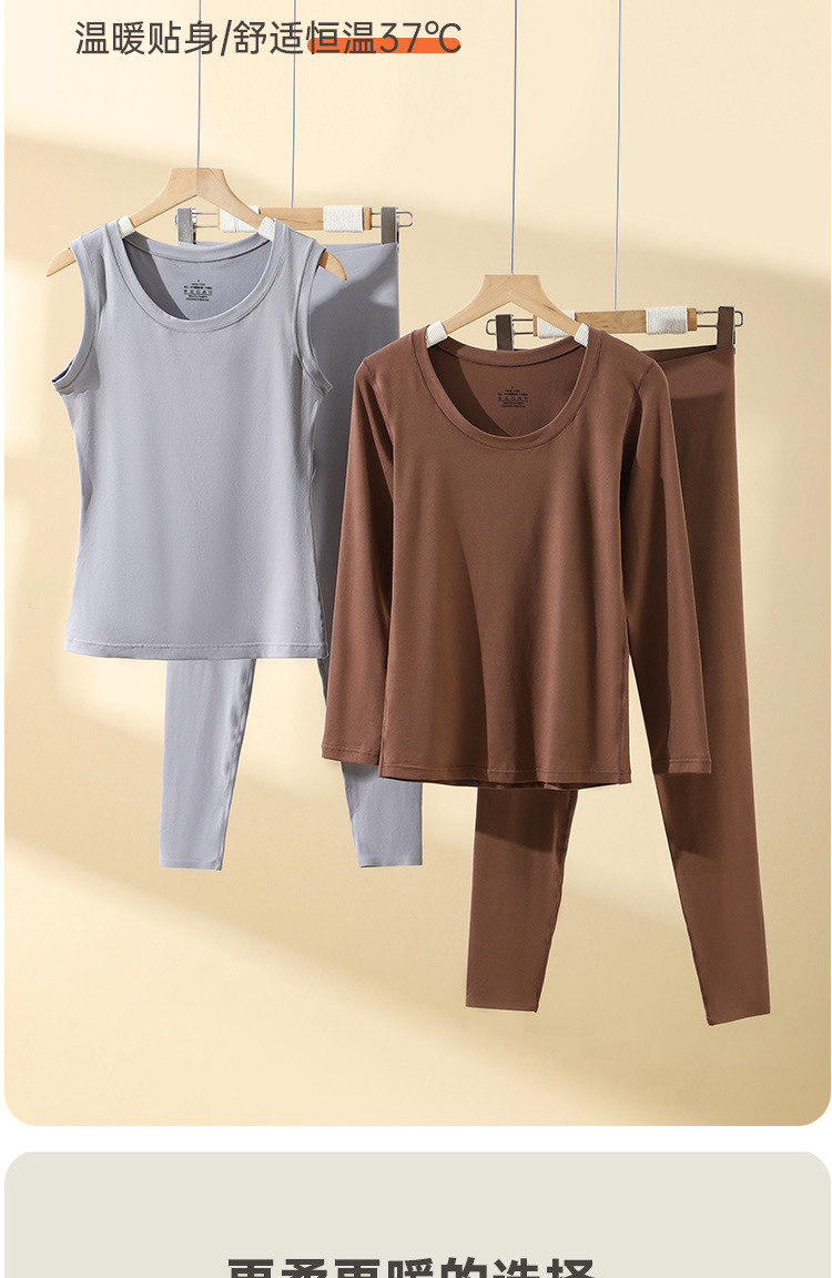 无痕发热保暖内衣女高弹打底衫长袖背心德绒套装秋冬牛奶丝美肤衣