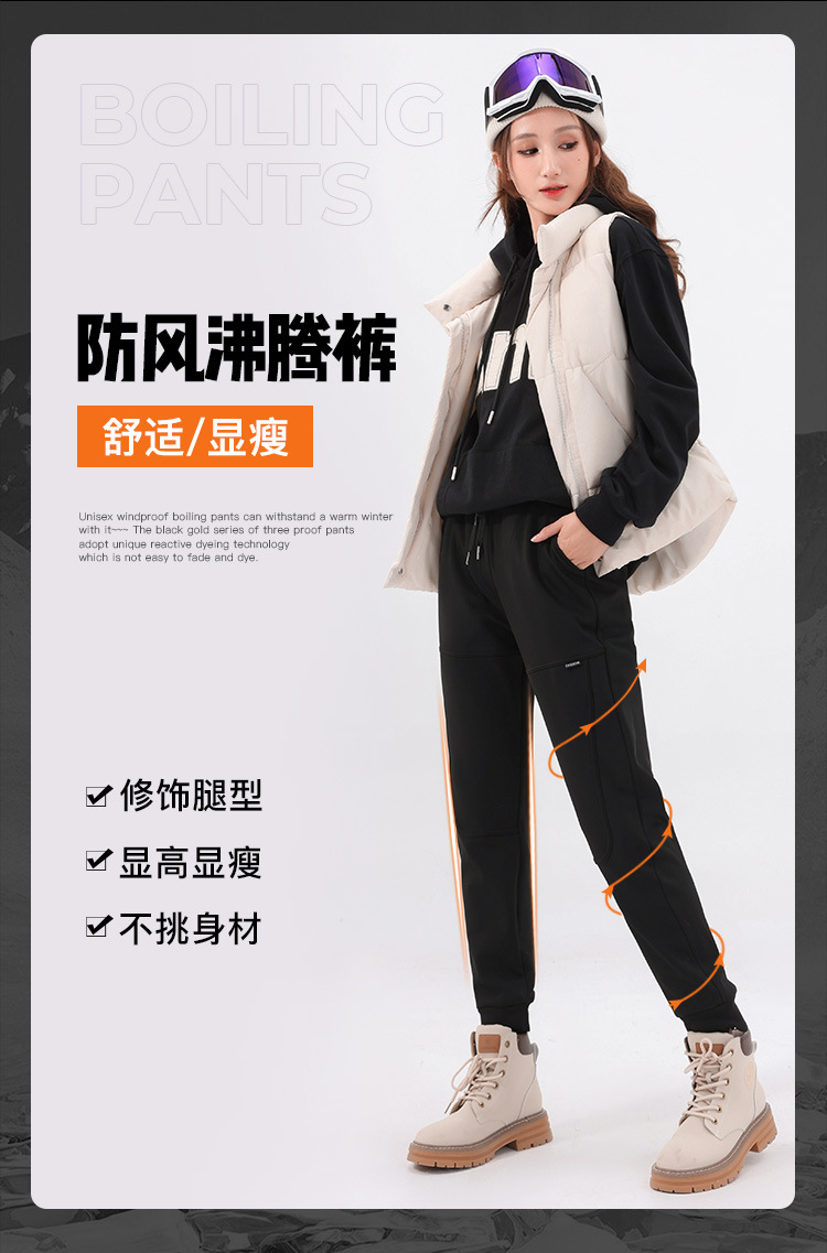 2023新款黑金沸腾裤男女同款护膝防水保暖加绒卫裤情侣防风休闲裤