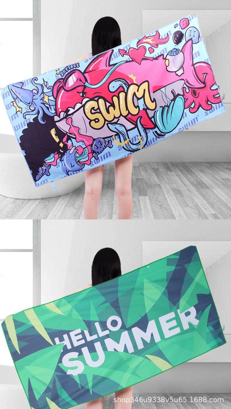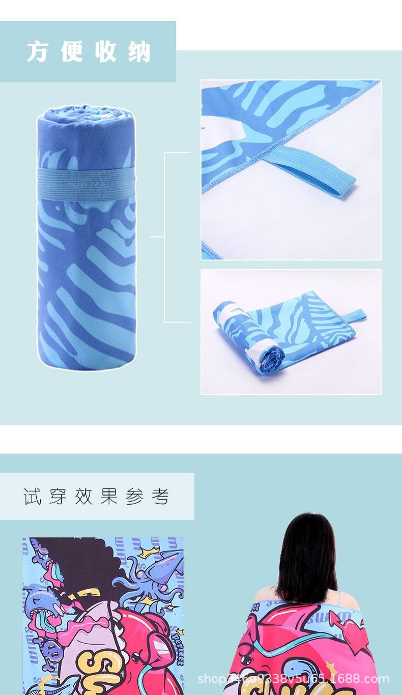 超细纤维双面绒沙滩巾速干印花沙滩浴巾游泳防晒披肩吸水浴巾吸汗