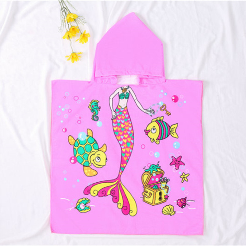 宝宝洗澡游泳可穿儿童浴巾卡通带帽沙滩衣小孩男女童浴巾斗篷