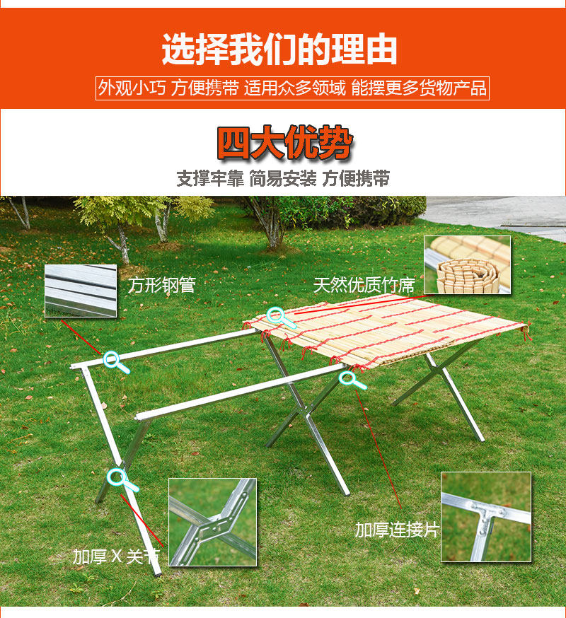 地摊架子摆货架便携可伸缩折叠竹席摆摊桌子加厚夜市摊位架展示架