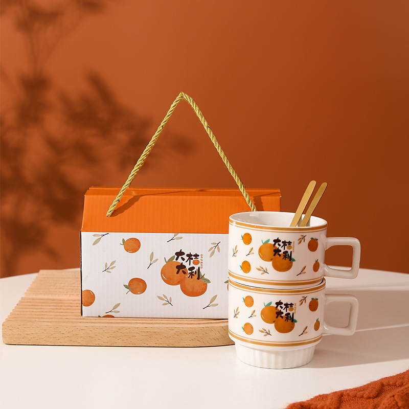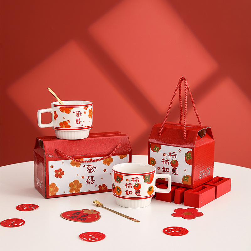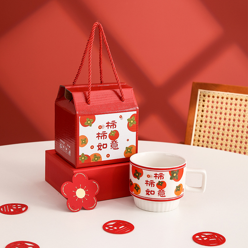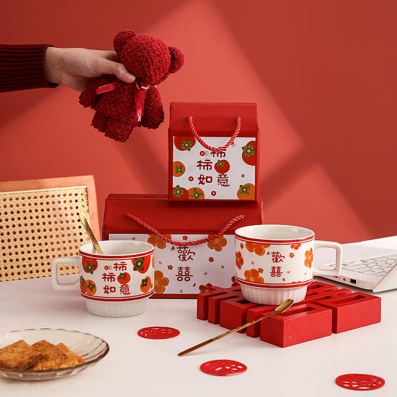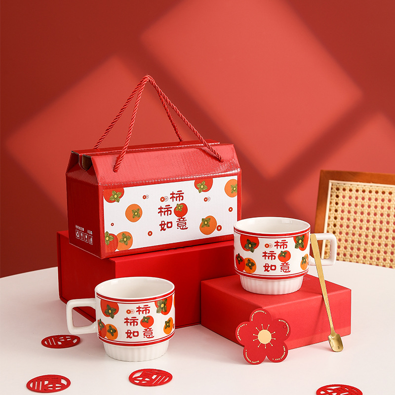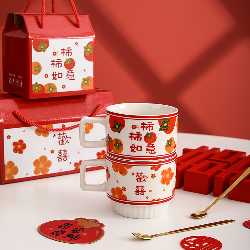 陶瓷叠叠杯套装大吉大利礼品杯开业活动伴手礼创意咖啡杯柿柿如意