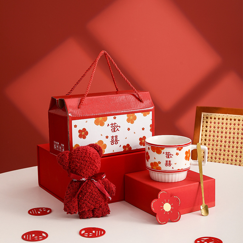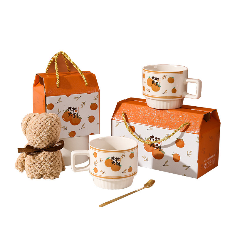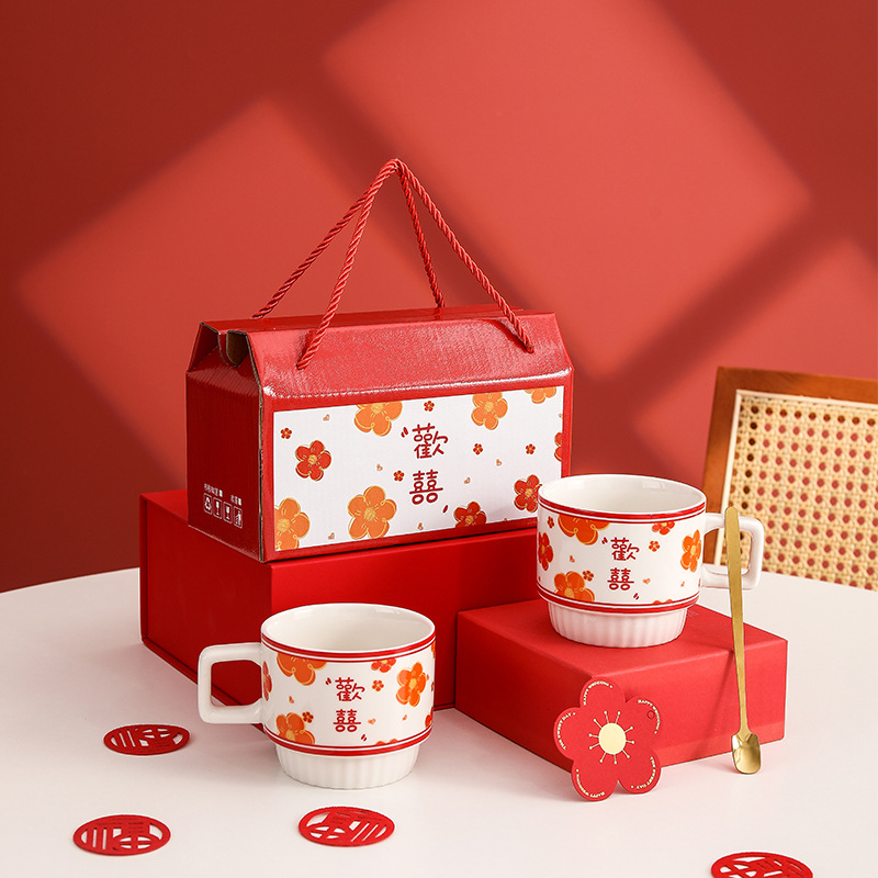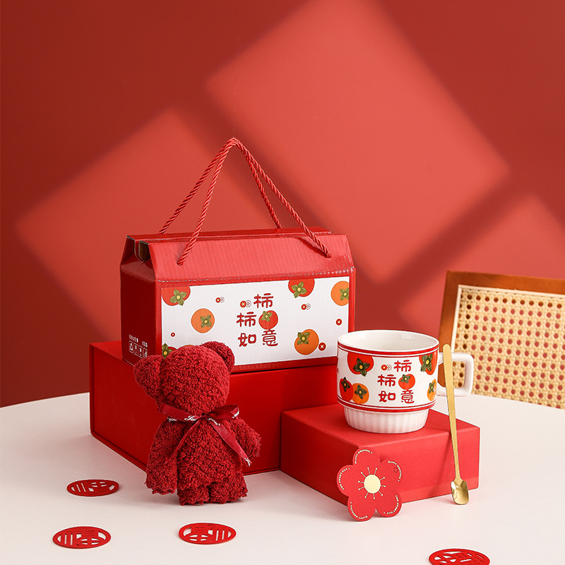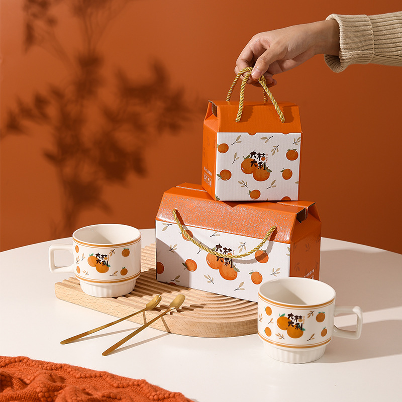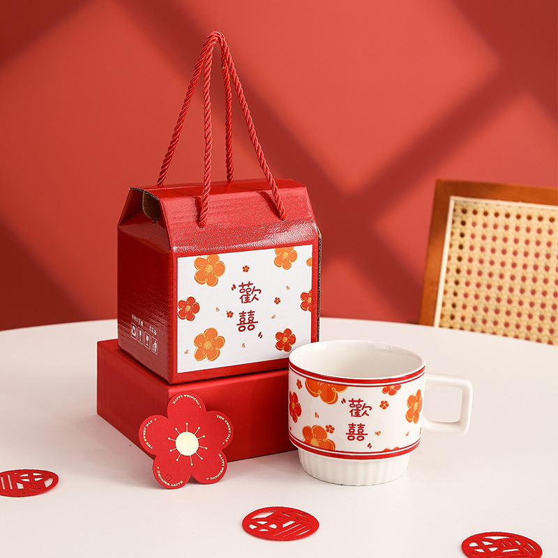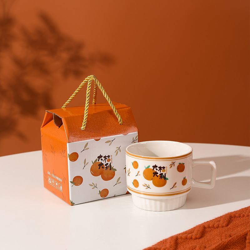 陶瓷叠叠杯套装大吉大利礼品杯开业活动伴手礼创意咖啡杯柿柿如意
