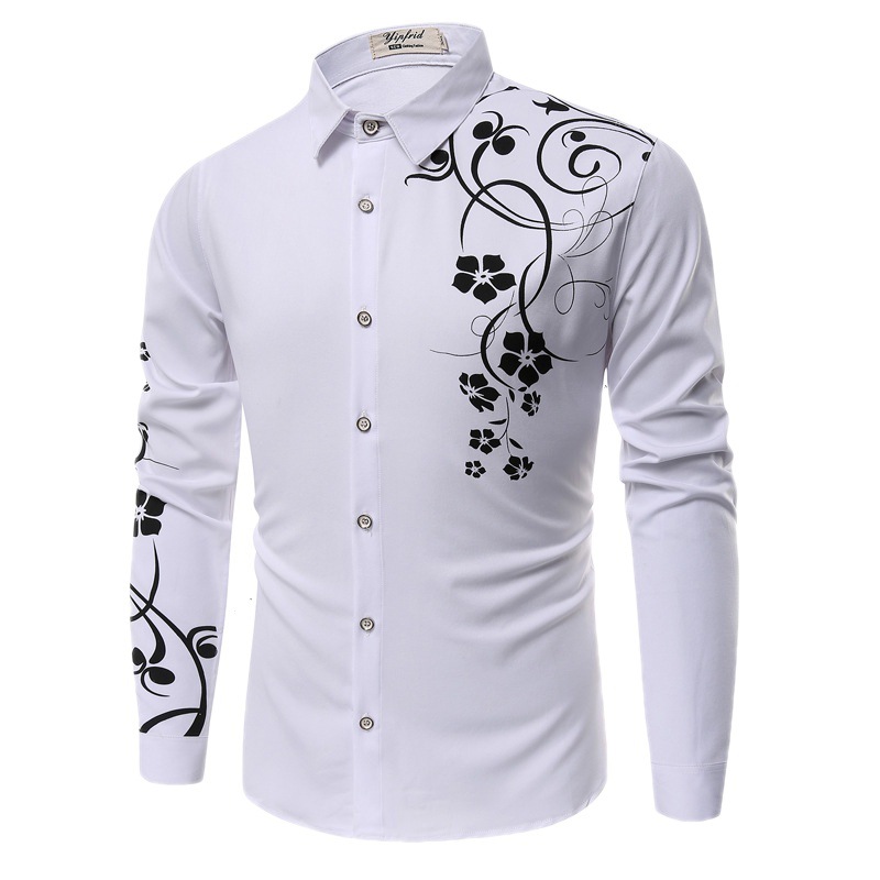 外贸亚马逊2023新款花衬衫男时尚紫荆花男士长袖衬衫 休闲男衬衣