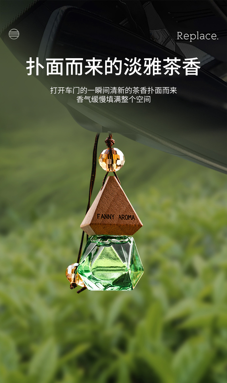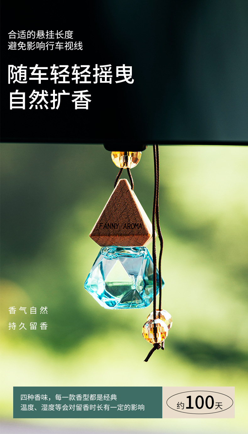 新款车载禅茶香氛汽车挂件装饰车内玻璃瓶精油吊坠精油香氛
