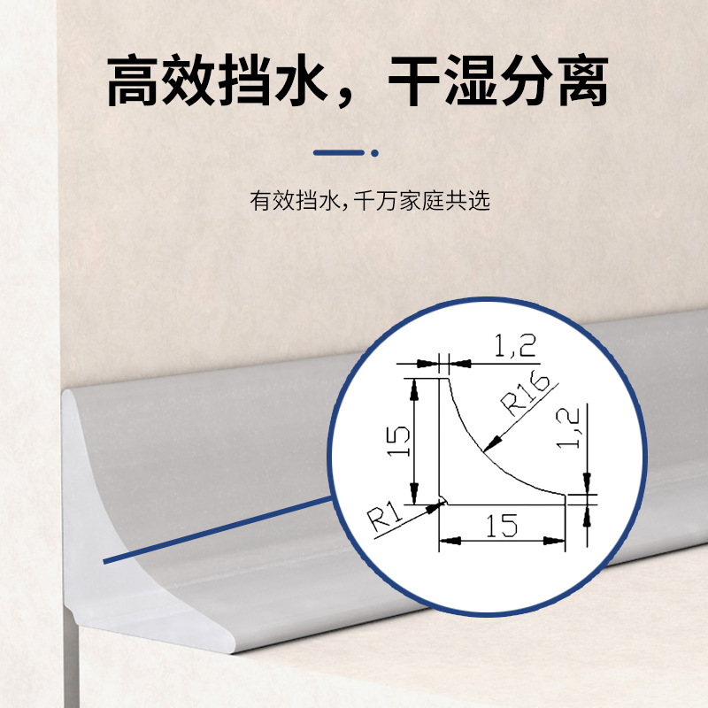 硅胶浴室洗手台干湿分离防水胶条自粘软胶厨房台面水槽隔水防潮条