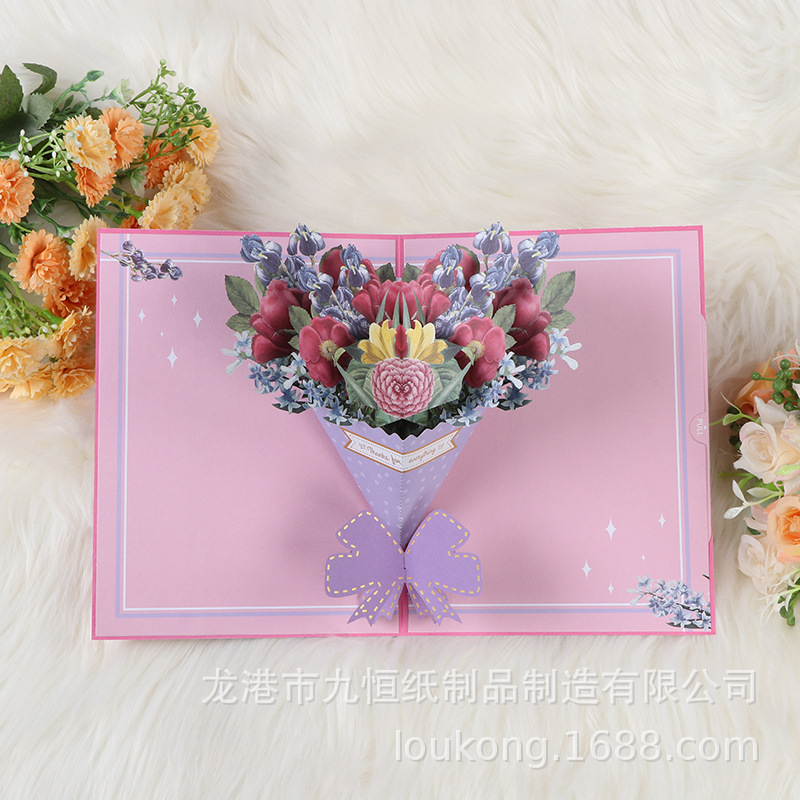 生日贺卡3d立体贺卡送女友创意少女心礼物实用留言卡片跨进批发