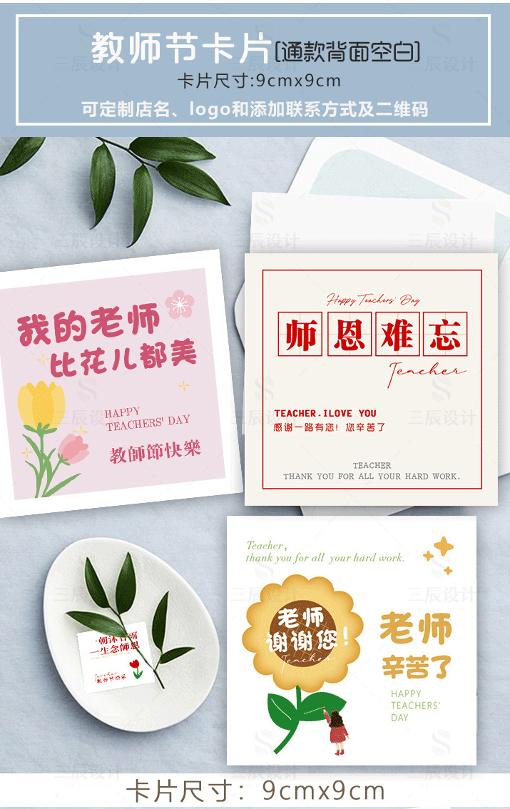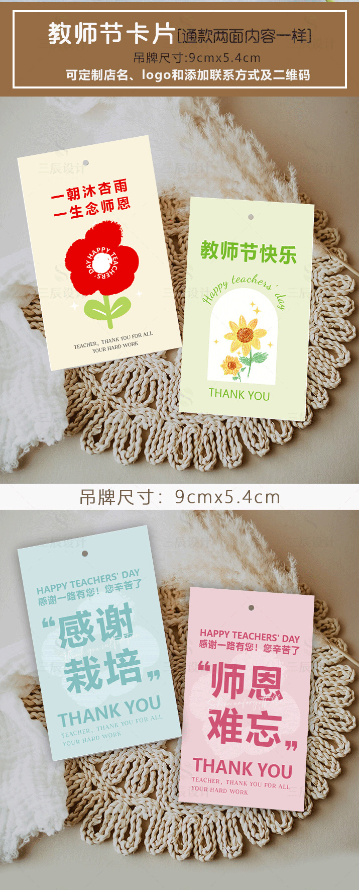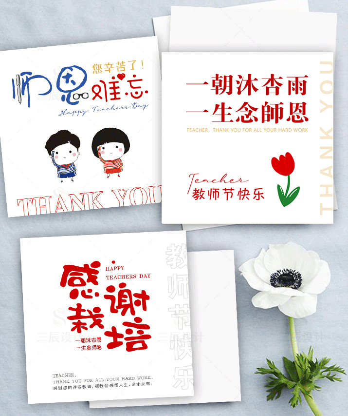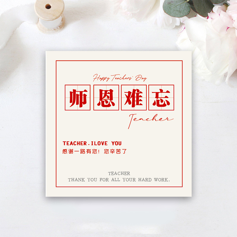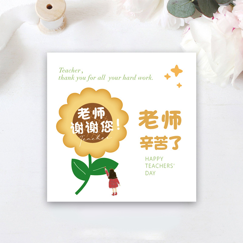 教师节卡通简约花束卡片贺卡吊牌师恩辛苦蛋糕礼盒贺卡留言卡