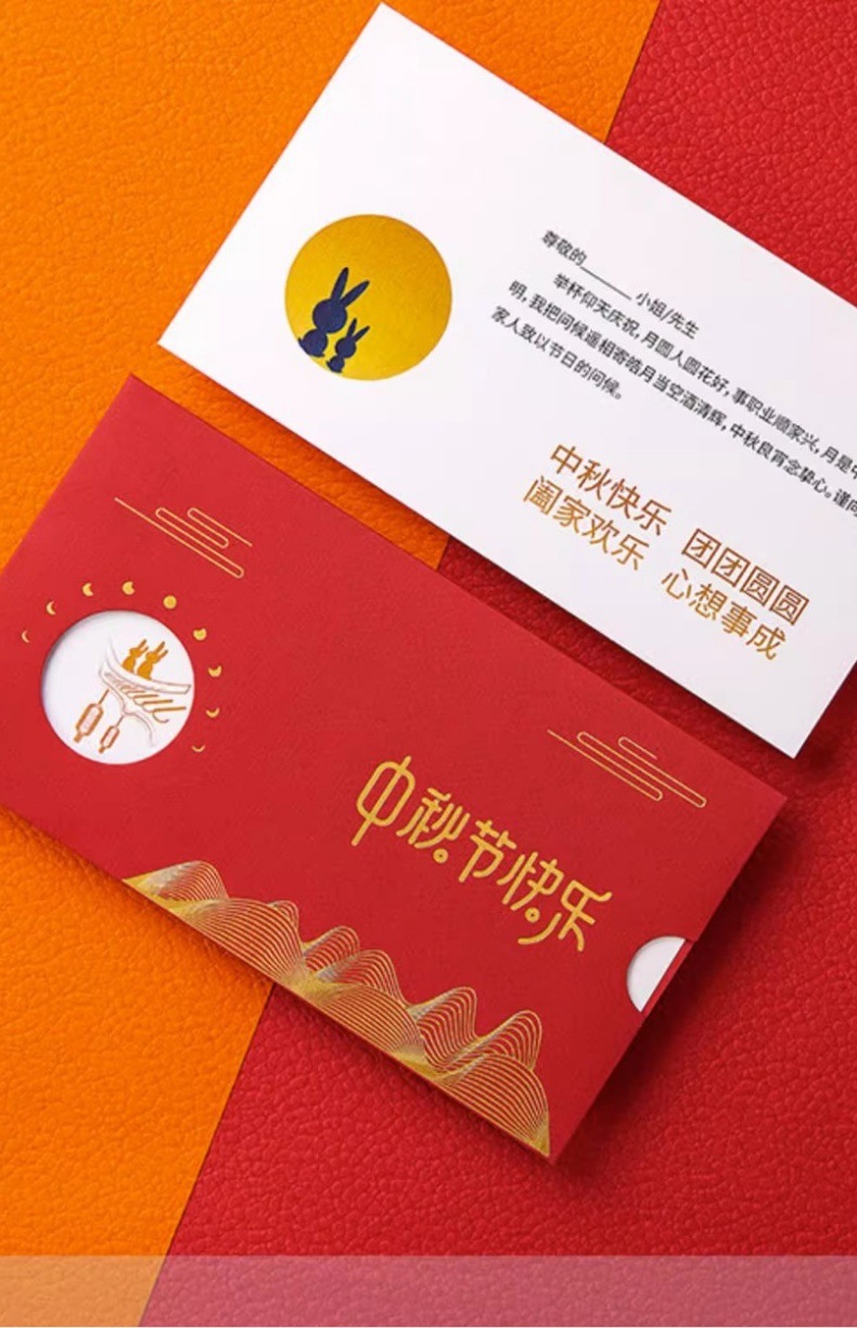 中秋教师节贺卡印制简约商务创意压纹贺卡单页卡片礼物小卡片信封