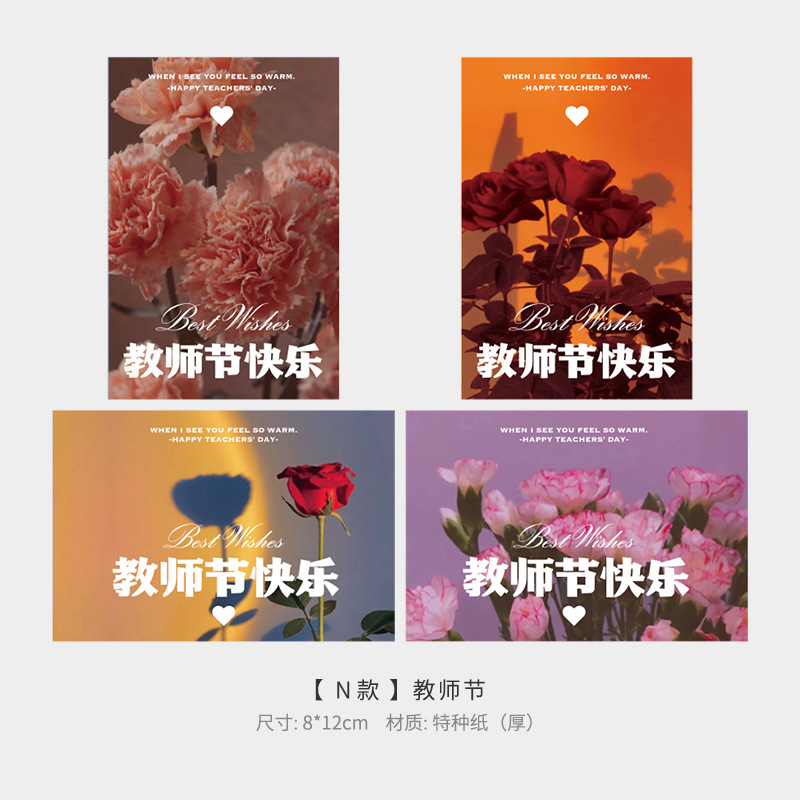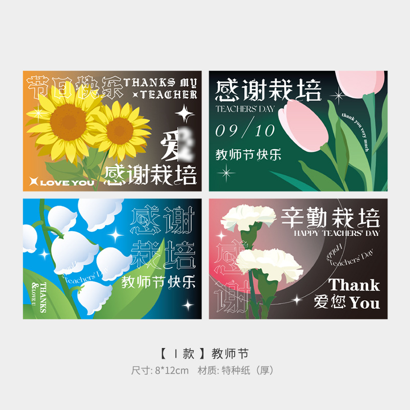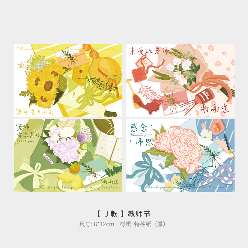 20张装新款教师节贺卡卡片感谢师恩节日祝福卡创意鲜花插卡小卡片