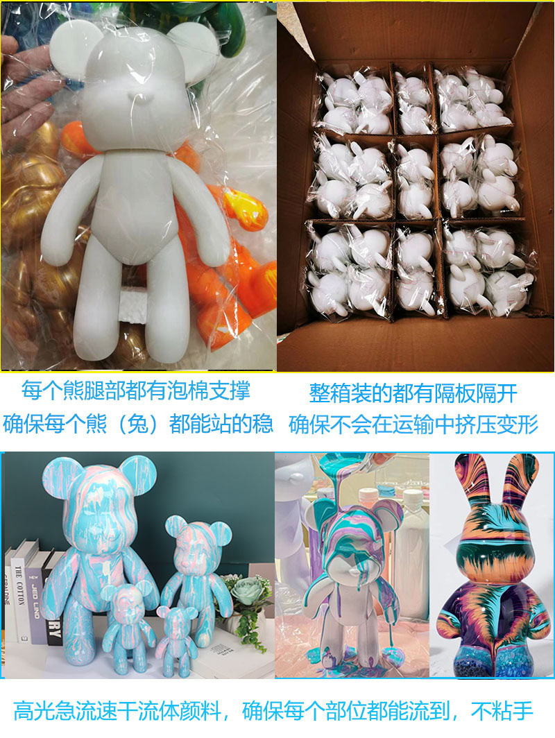网红非石膏娃娃大号流体熊 儿童涂色流体兔暴力熊存钱罐家居摆件