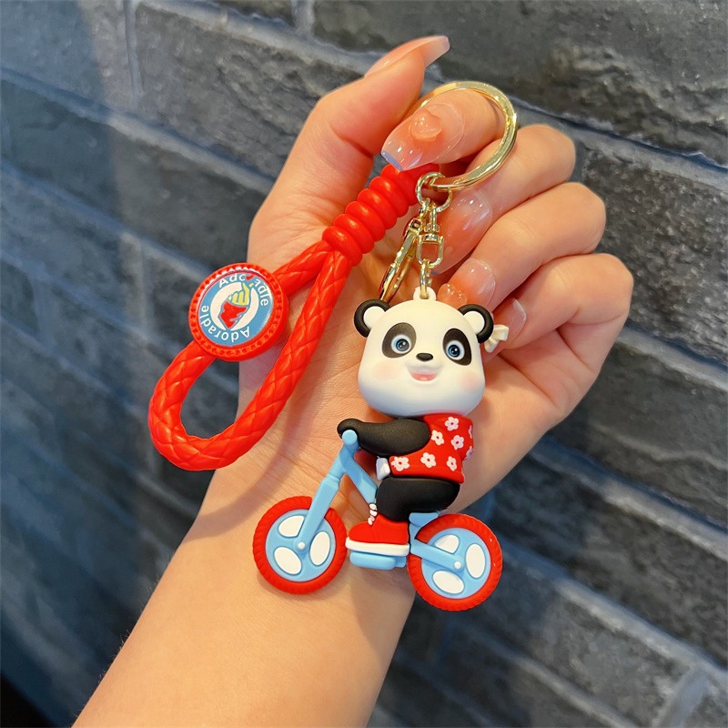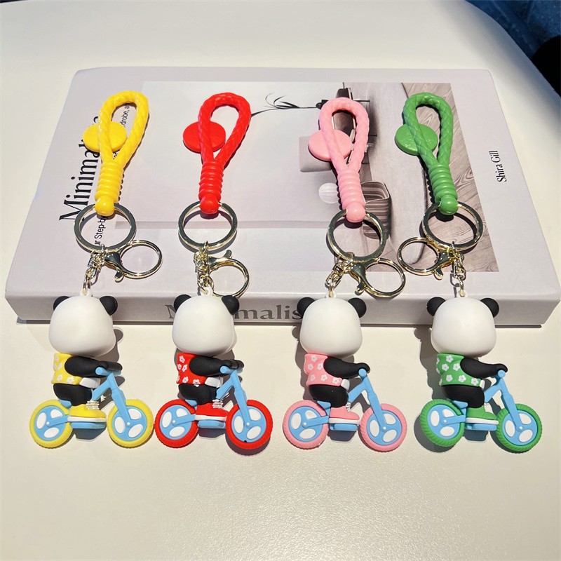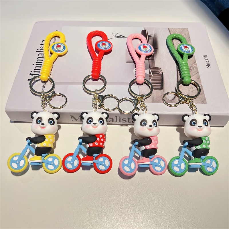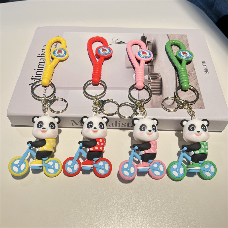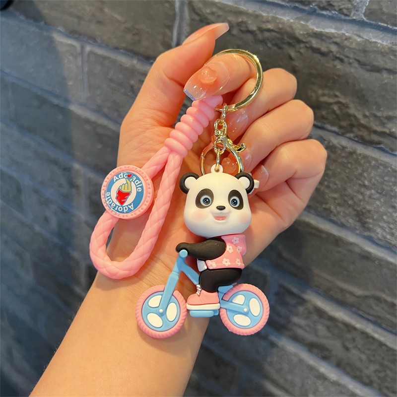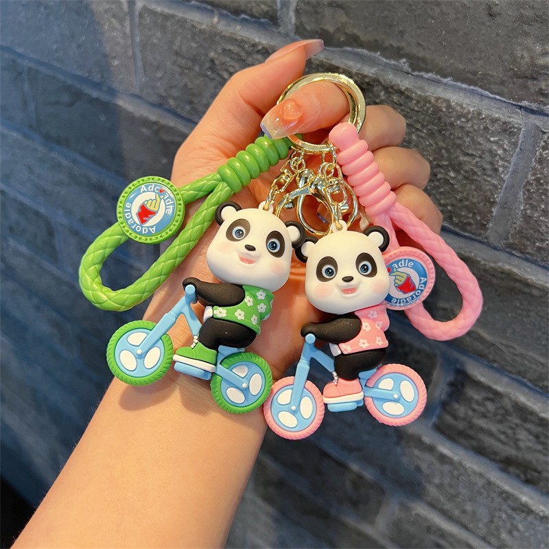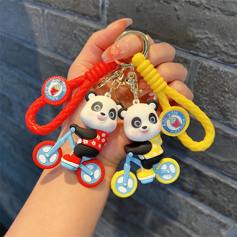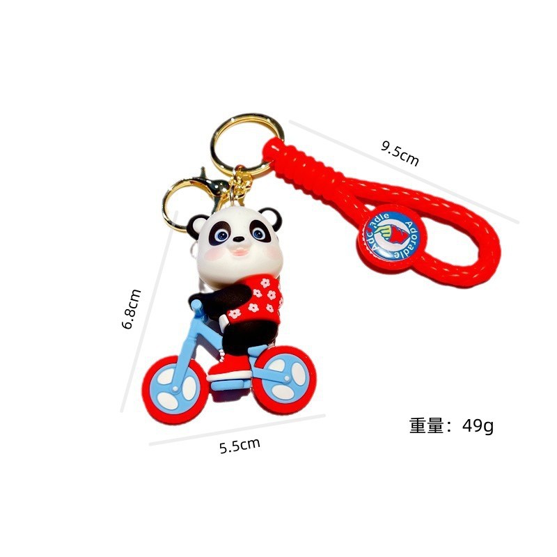 创意国潮熊猫钥匙扣可爱骑单车熊猫钥匙链男女包包挂件小挂件礼品