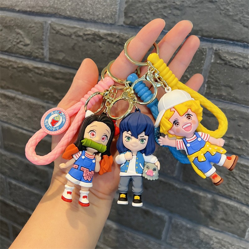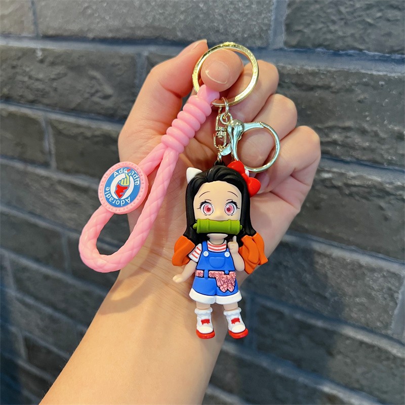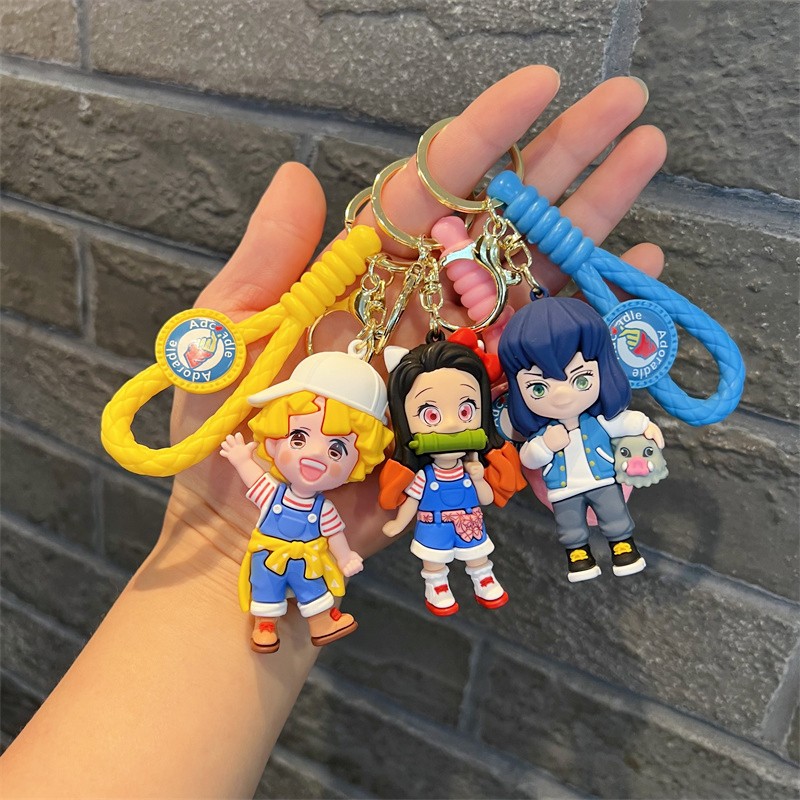 创意卡通鬼灭之刃钥匙扣可爱祢豆子善逸伊之助钥匙链男女包包挂件
