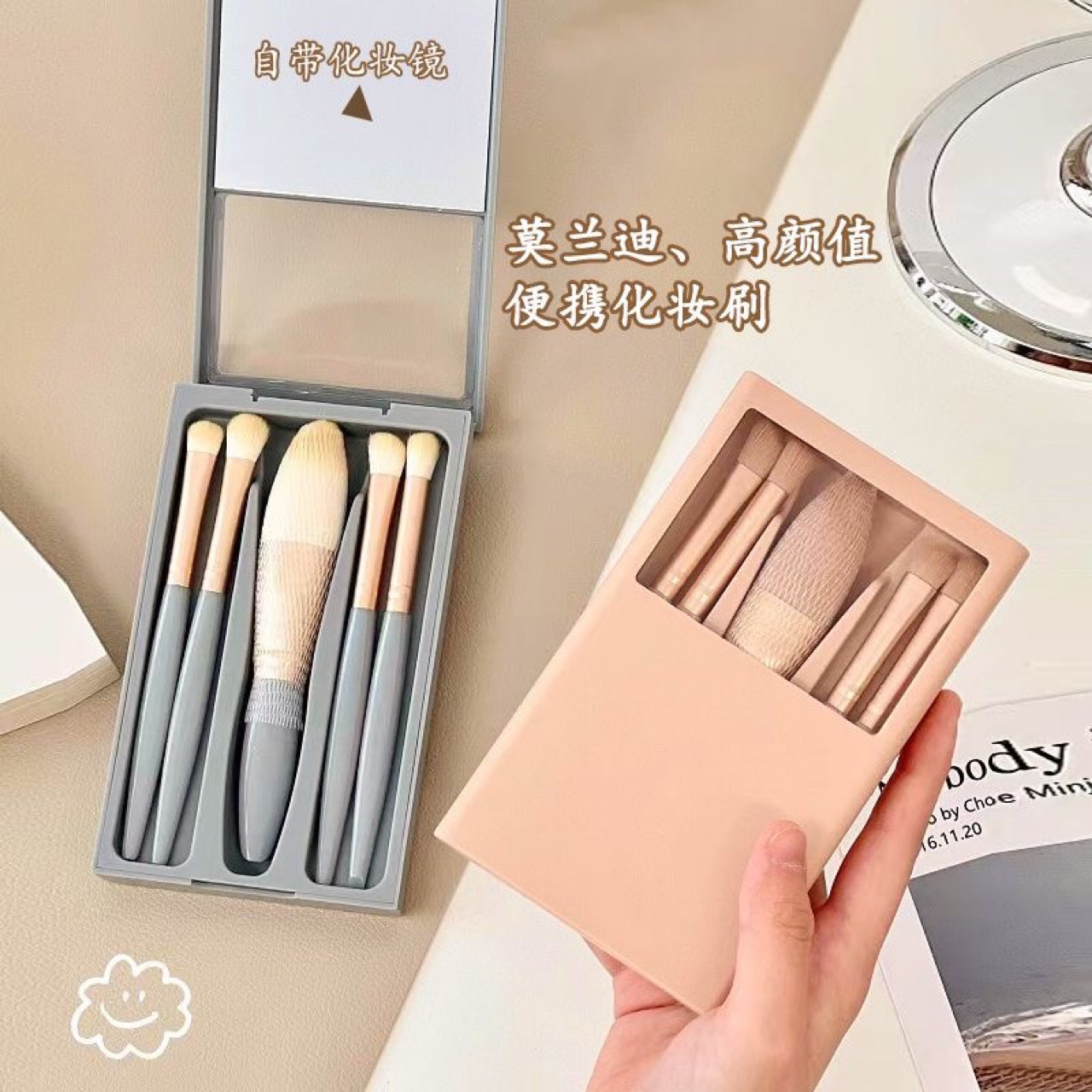 带镜子化妆刷套装全套超软毛一整套盒装散粉眼影刷套盒便携式小套